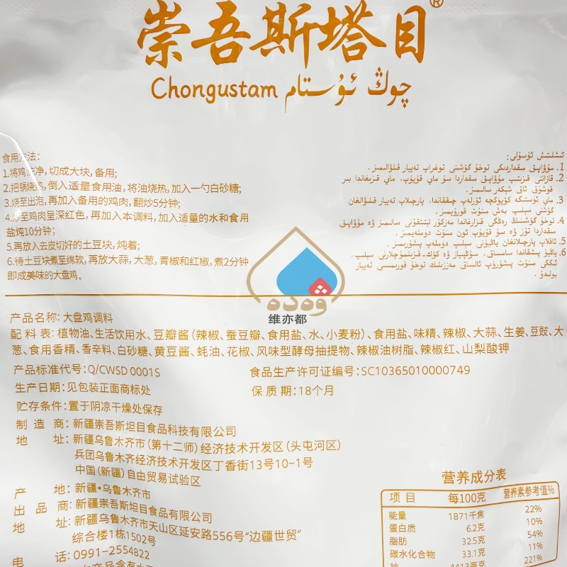新疆崇吾斯塔目大盘鸡调料120克液体调味料含60克×2袋家用批发
