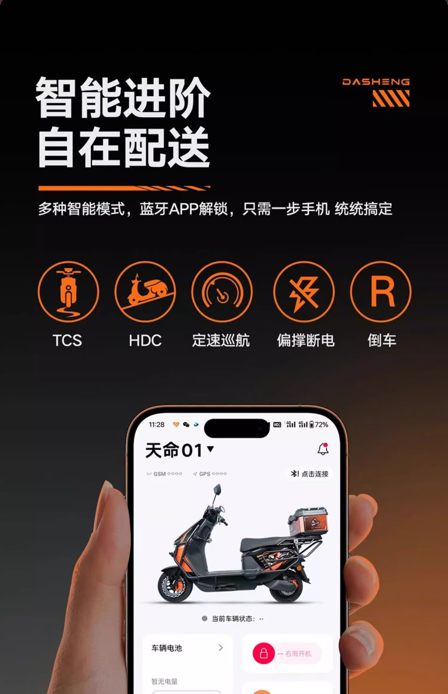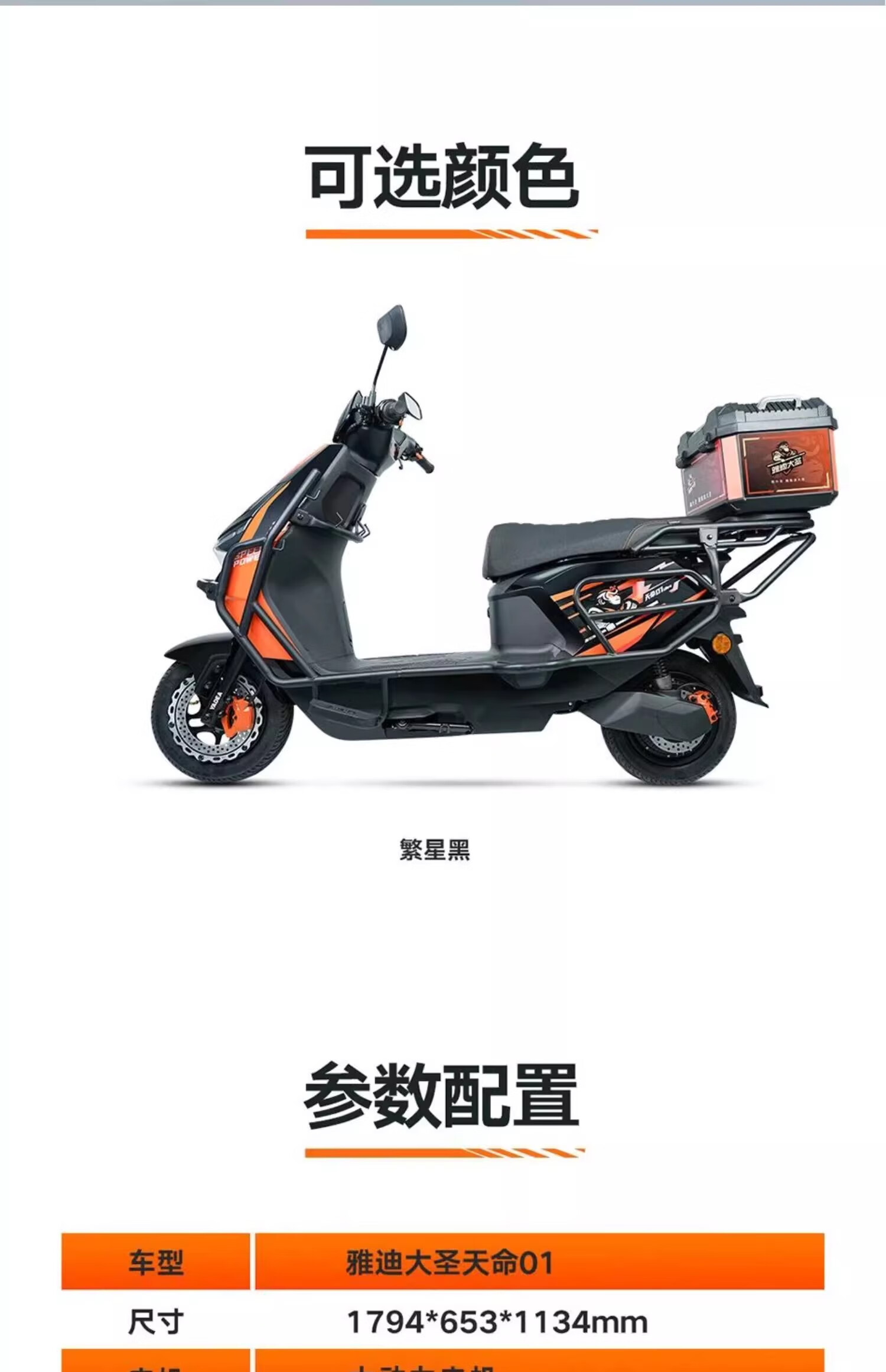 台邦牌电动车天命01电动摩托车72V大功率高速长续航外卖车专用电摩 天命01黑色带护杠 裸车