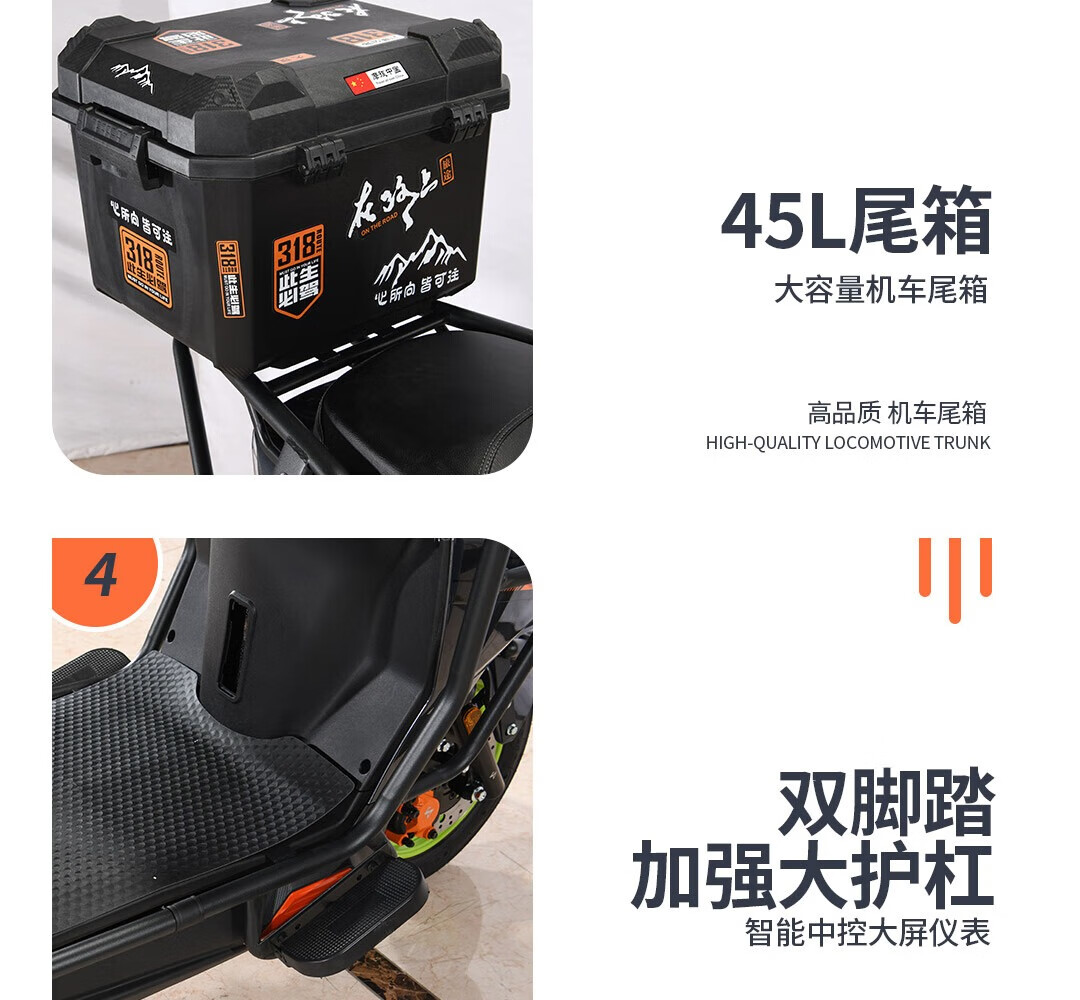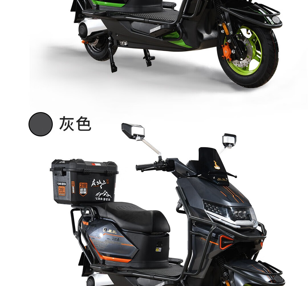 台邦牌(Phoenix)外卖电动车长续航大功率电动摩托车成人代步车男女士通勤前后碟刹新款两轮电瓶车 AE85灰色(大护杠+外卖尾箱+头盔+雨披+工具包) 72V50A(全新A品锂电里程150KM)
