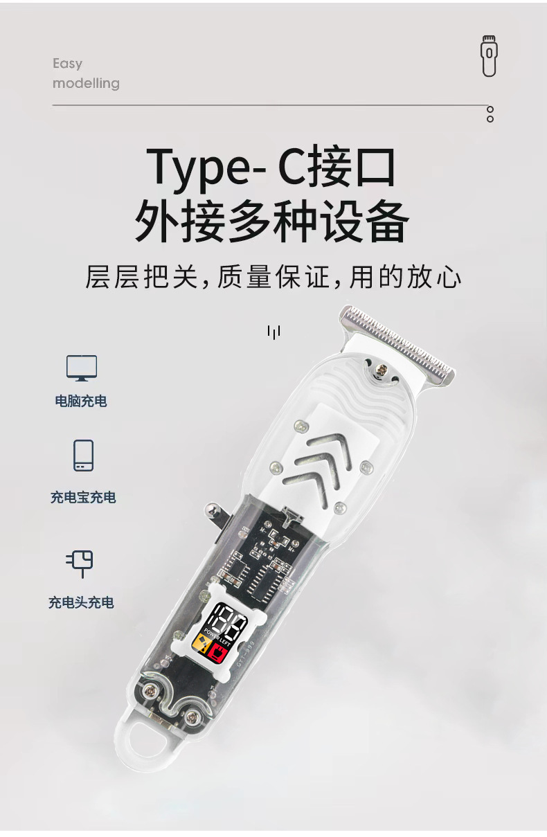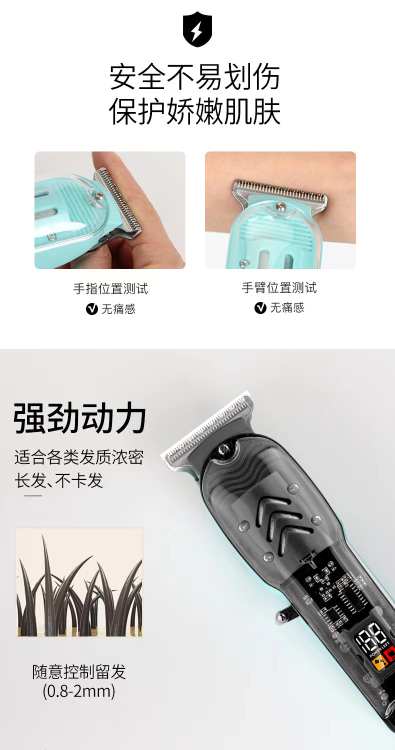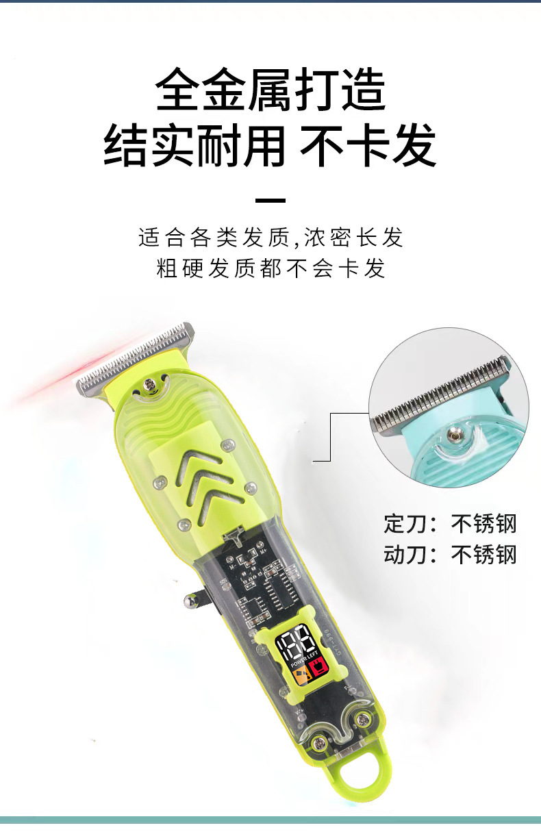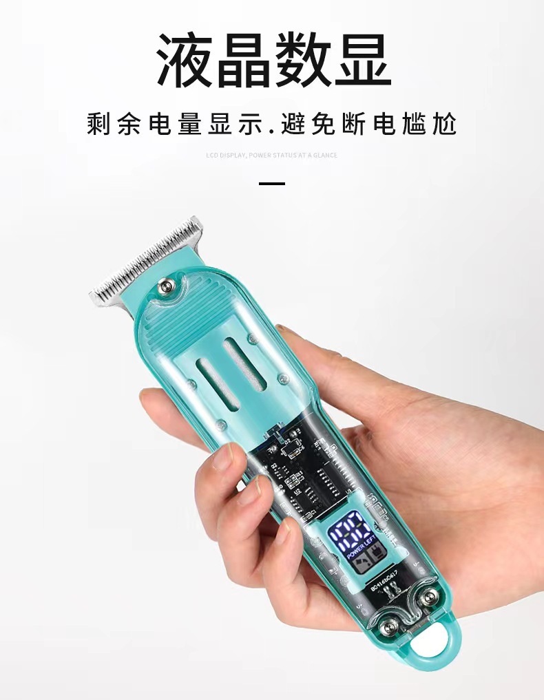 跨境透明数显理发器油头电推剪发廊专业剃光头电推剪液晶充电理发