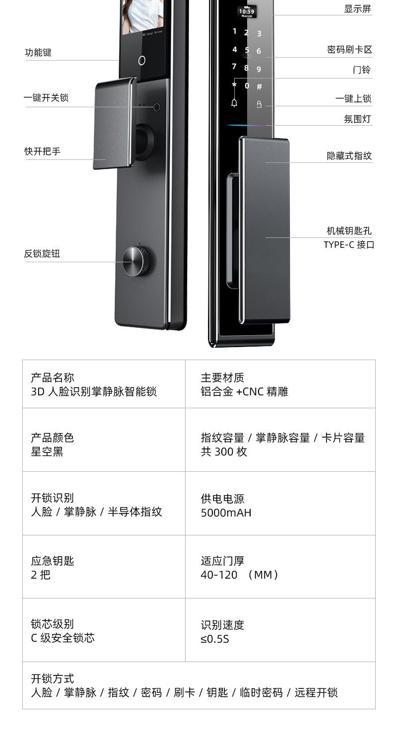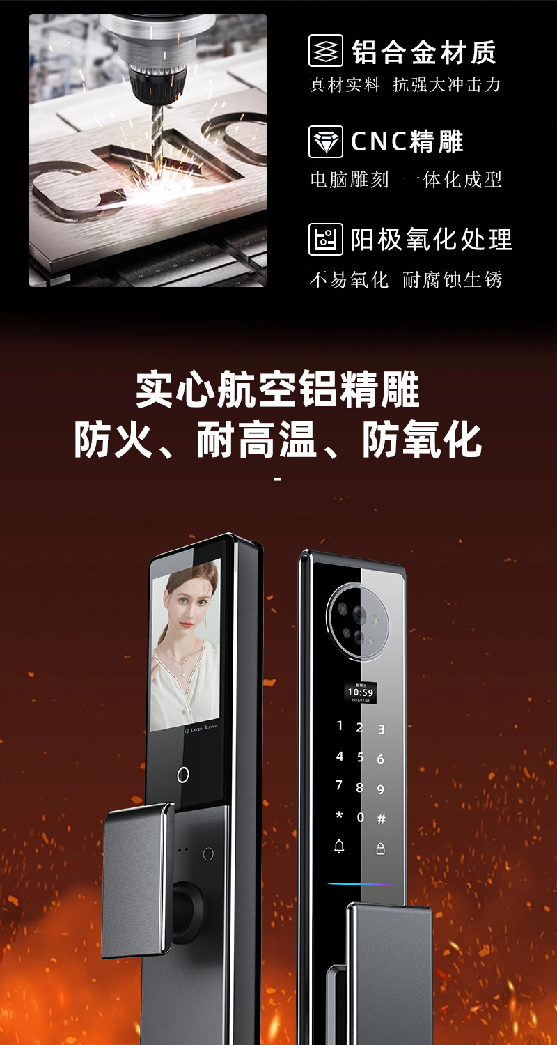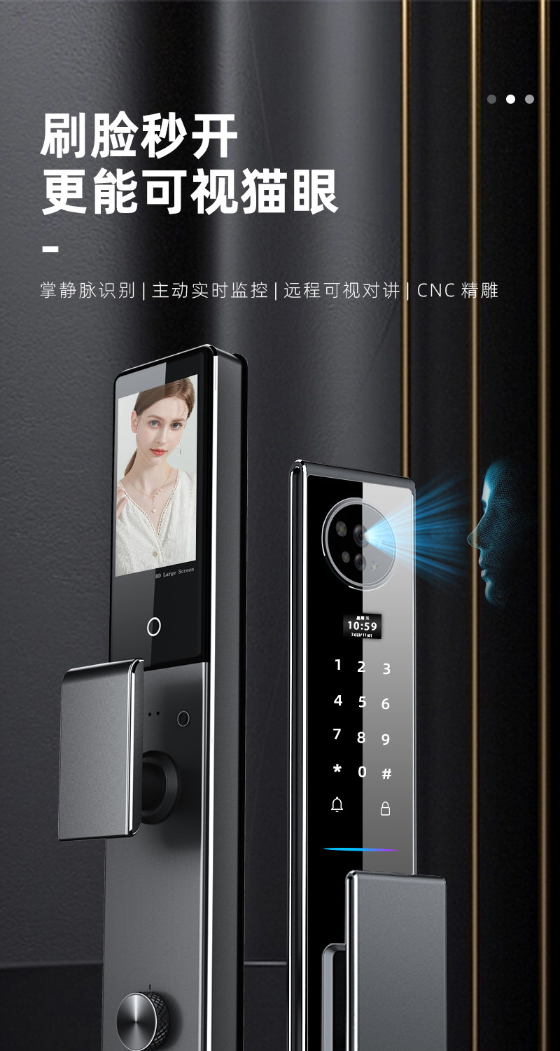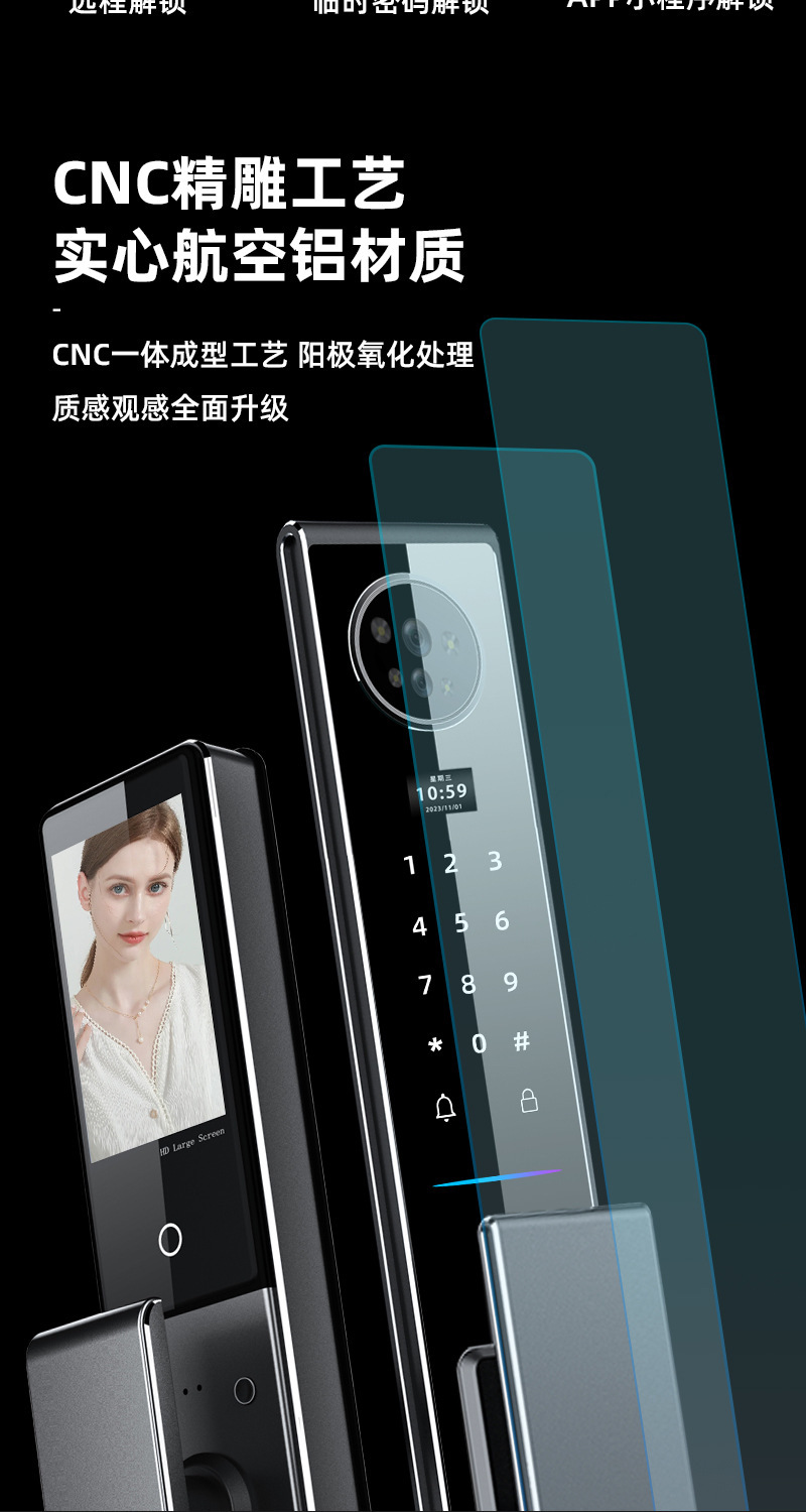 指纹锁3D人脸识别智能锁家用cnc防盗门密码锁实时视频监控智能锁