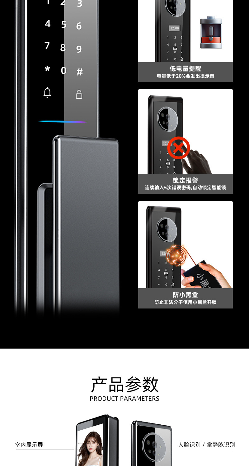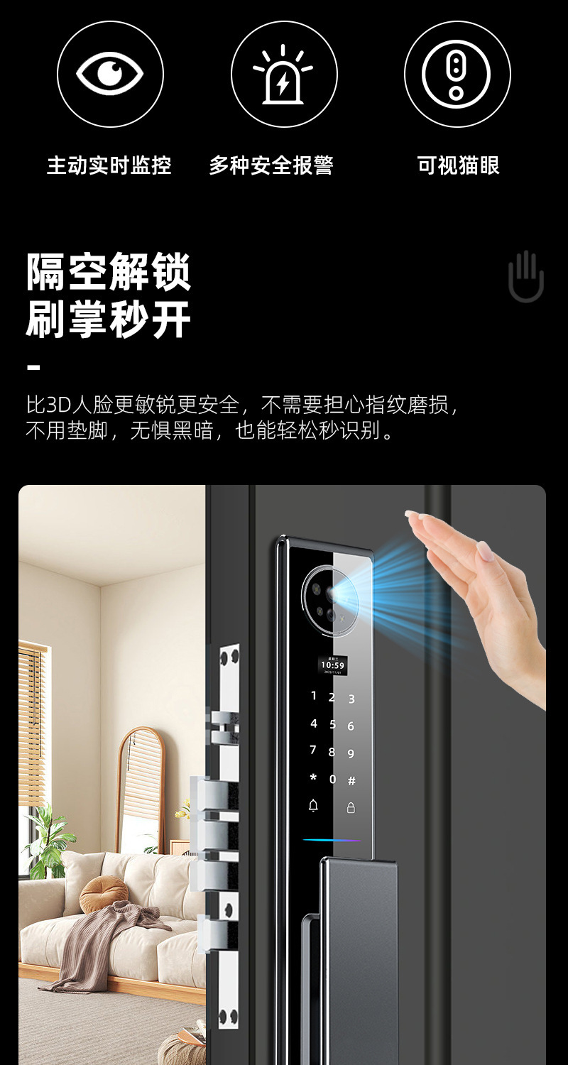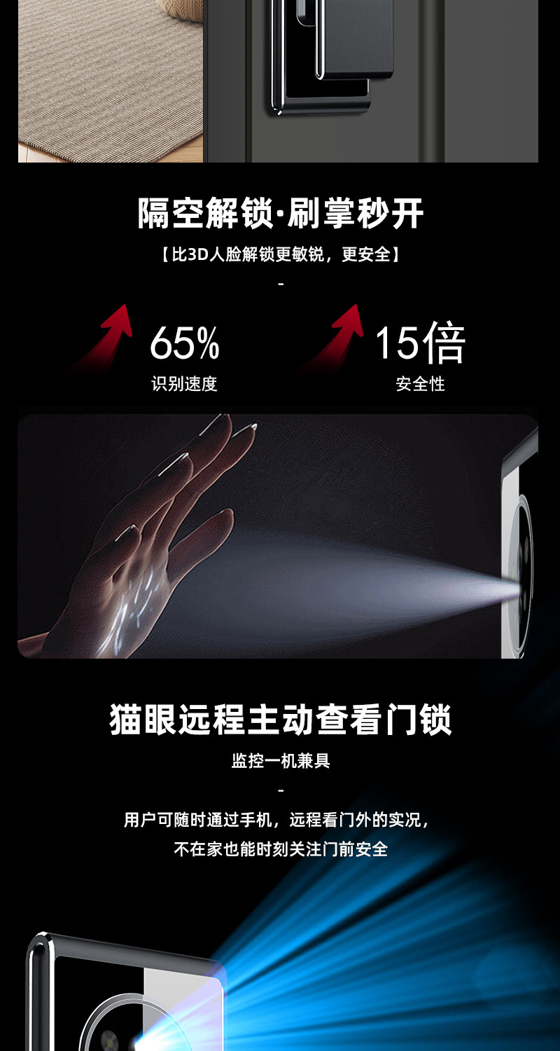 指纹锁3D人脸识别智能锁家用cnc防盗门密码锁实时视频监控智能锁