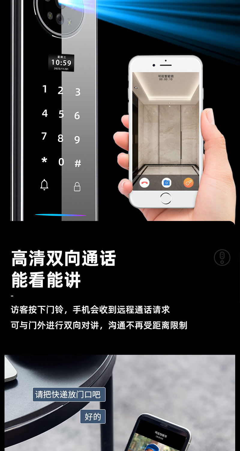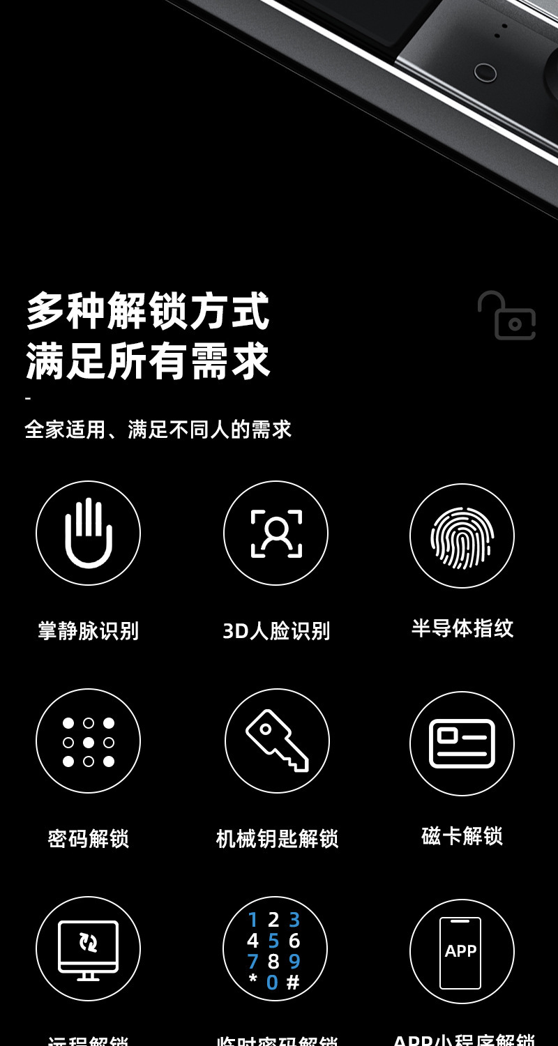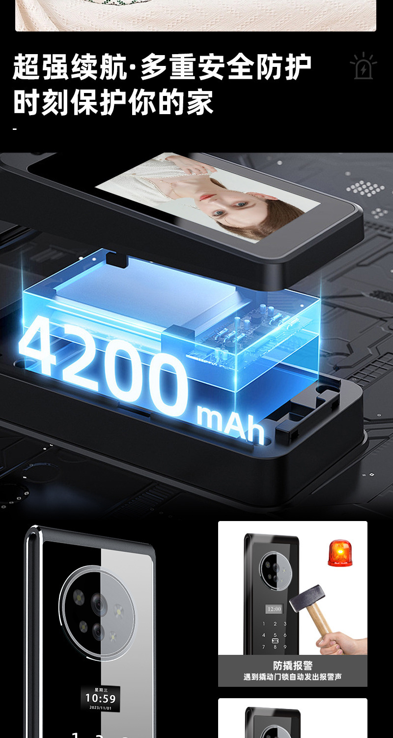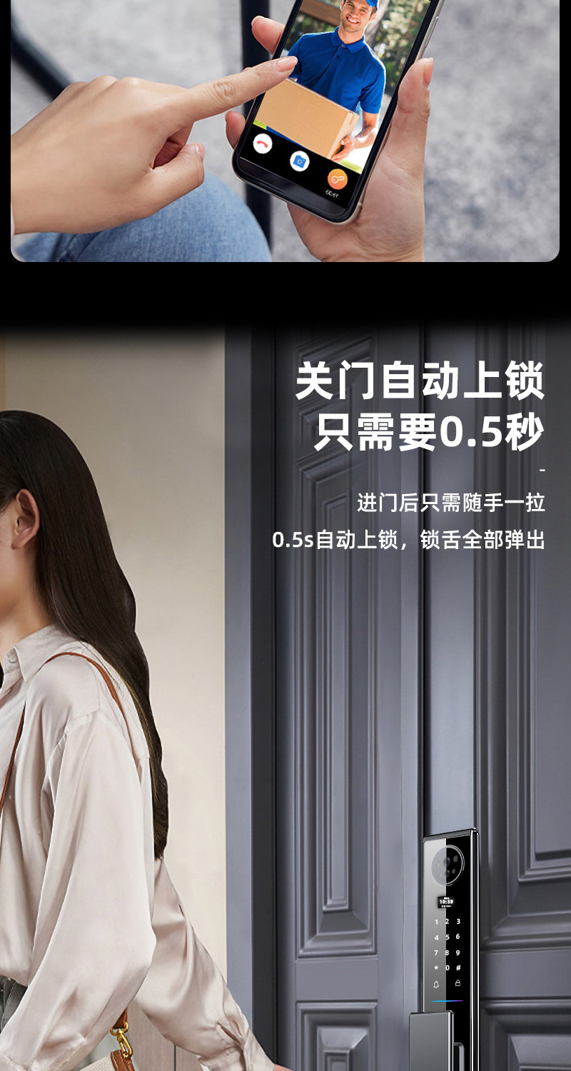 指纹锁3D人脸识别智能锁家用cnc防盗门密码锁实时视频监控智能锁