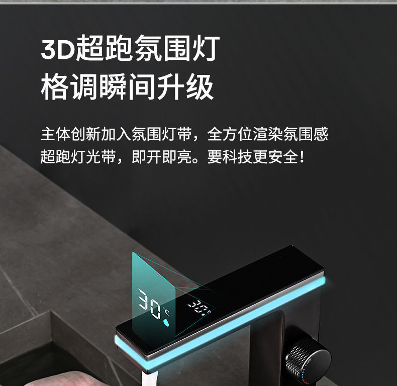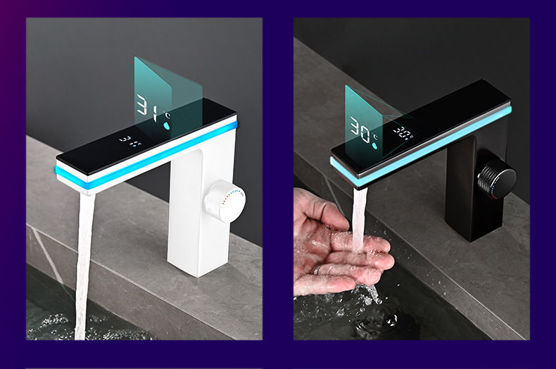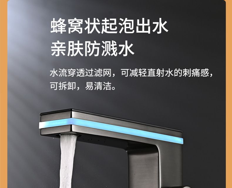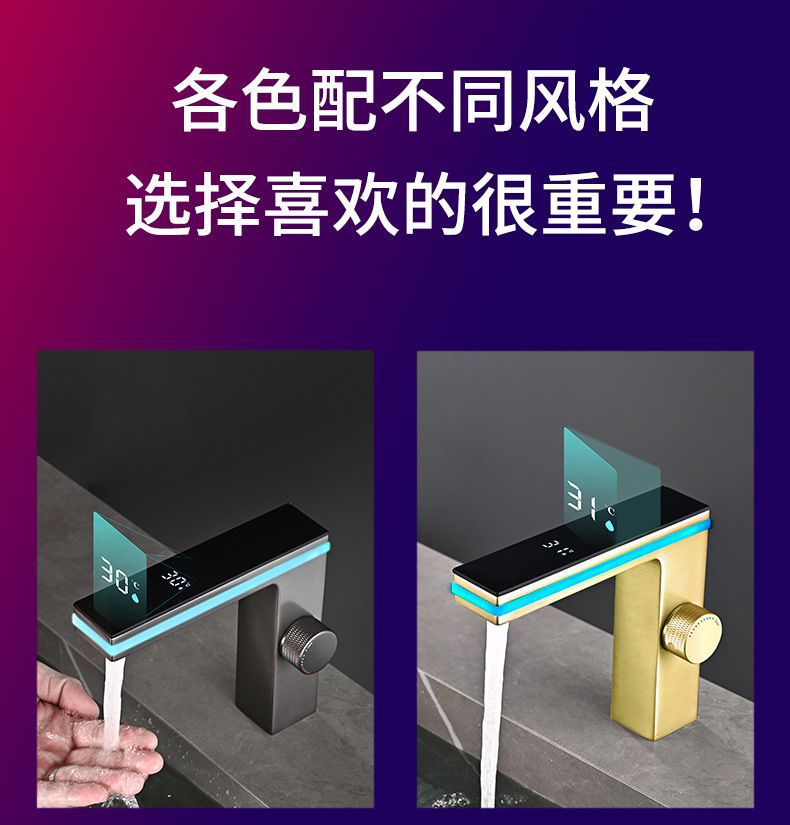 智能数显氛围灯面盆冷热水龙头全铜卫生间洗脸盆浴室洗手台盆龙头