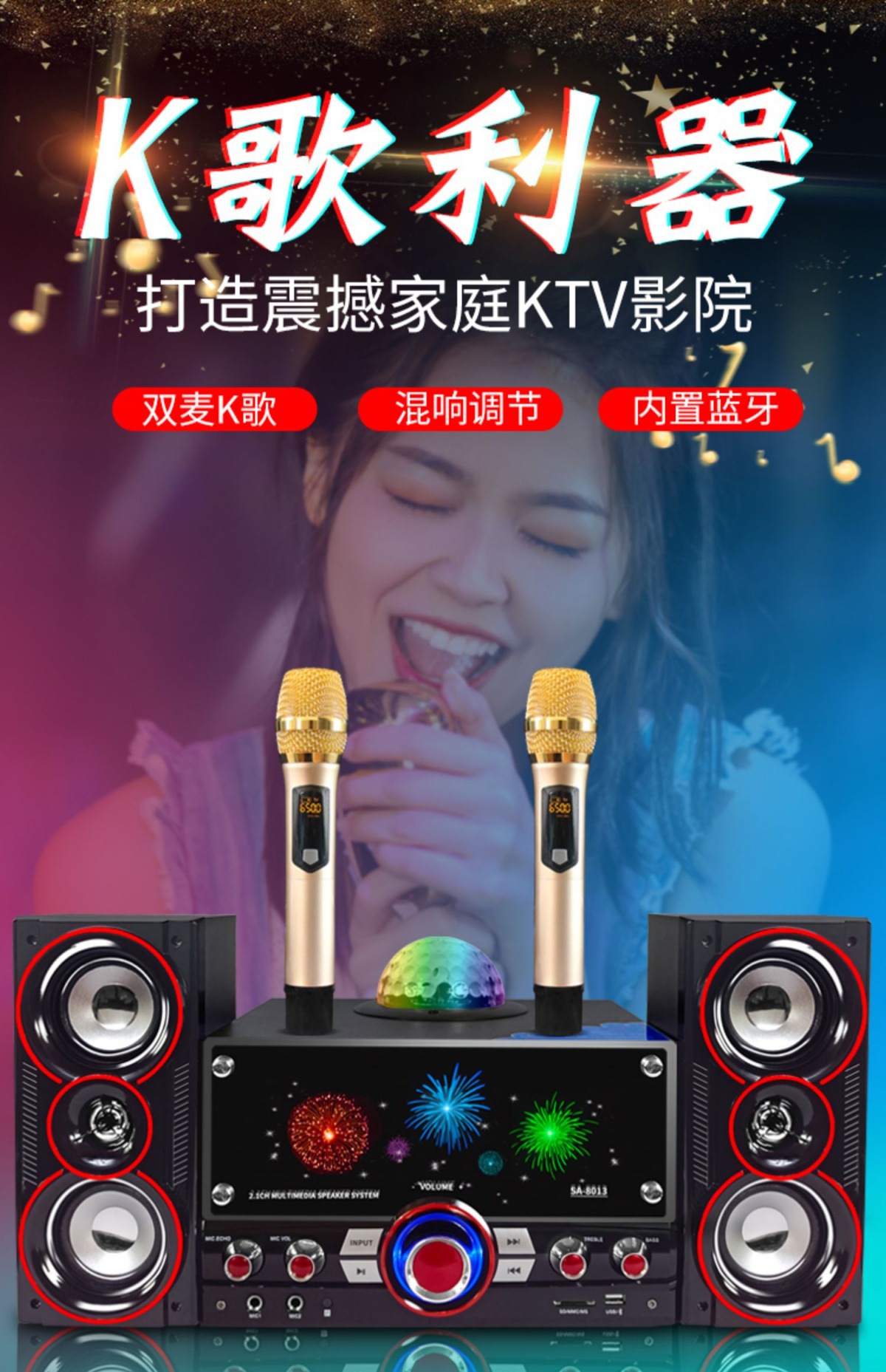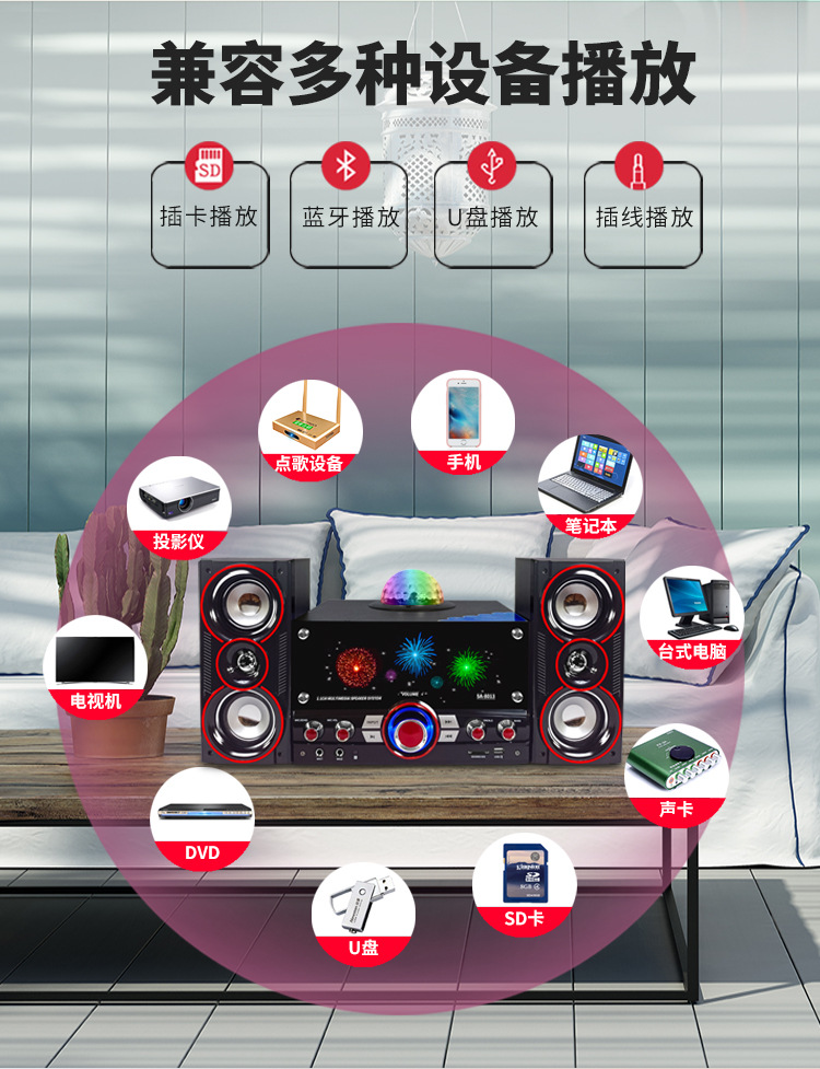 SAST先科音响家用K歌低音炮家庭ktv音响套装影响蓝牙功放电脑音箱