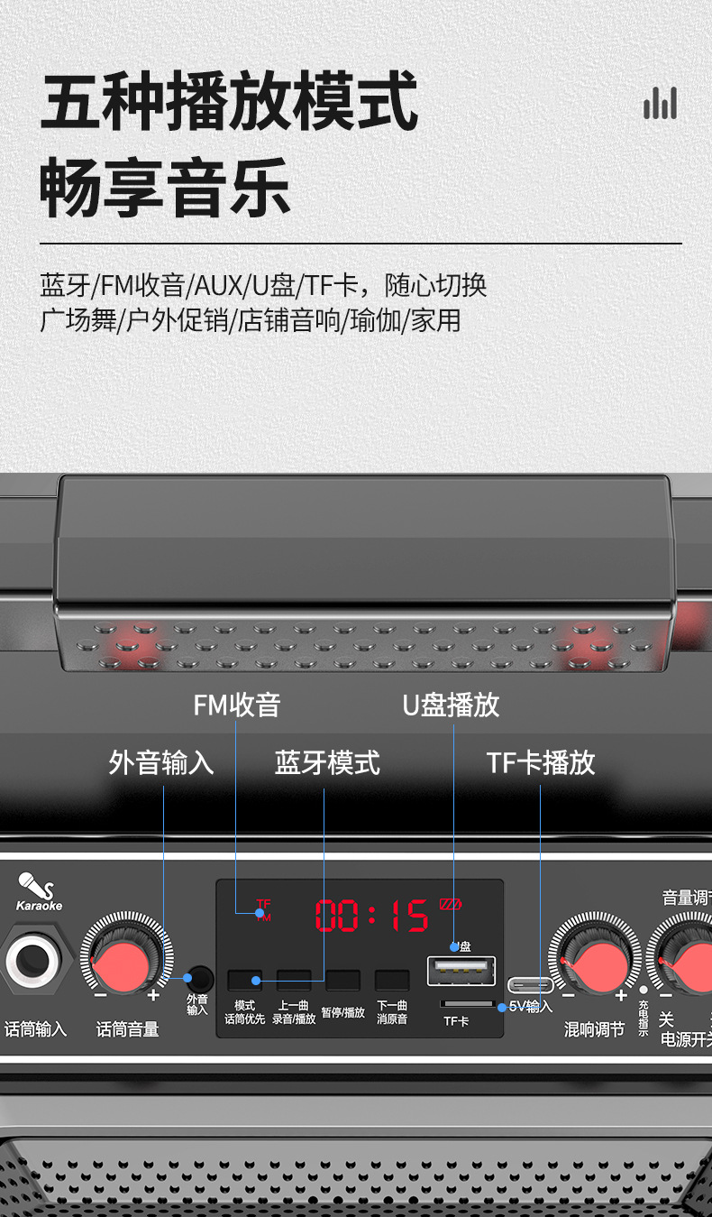 户外广场舞手提蓝牙音箱k歌充电便携音响大喇叭话筒摆摊叫卖收钱