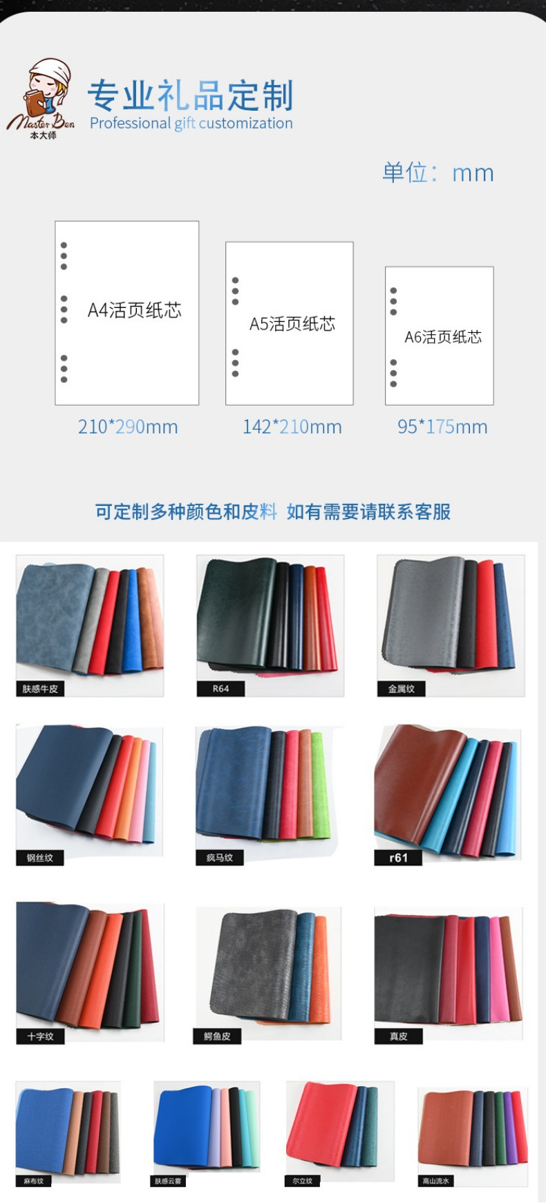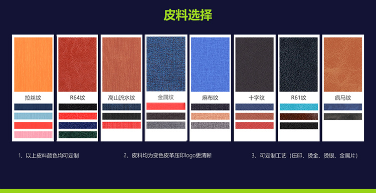 2 本子封面皮料以及颜色可以按照客户要求制作。