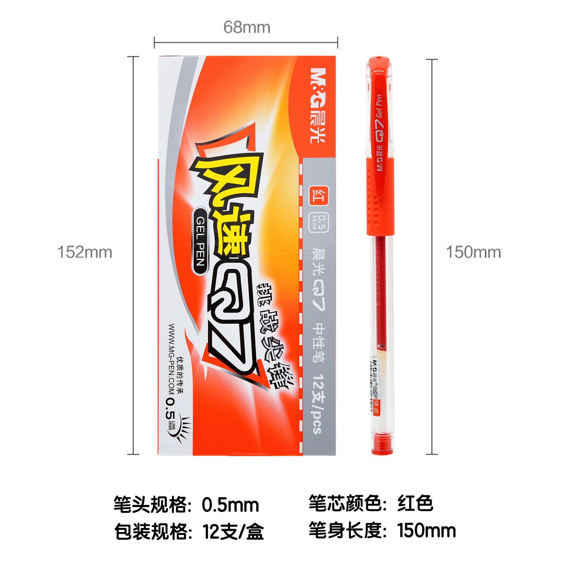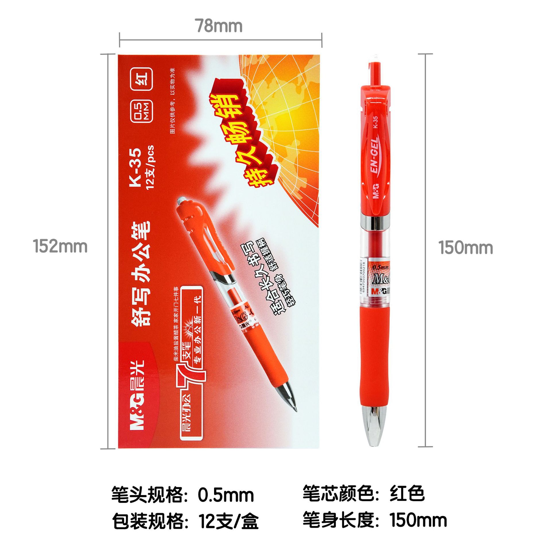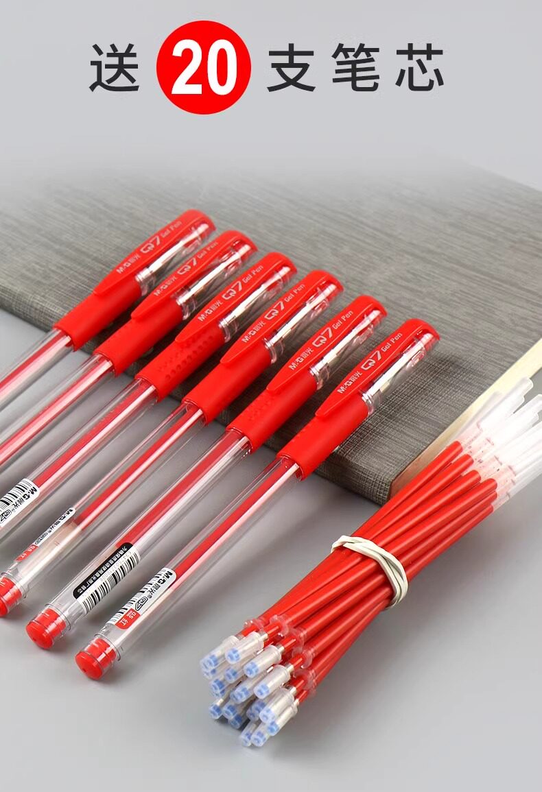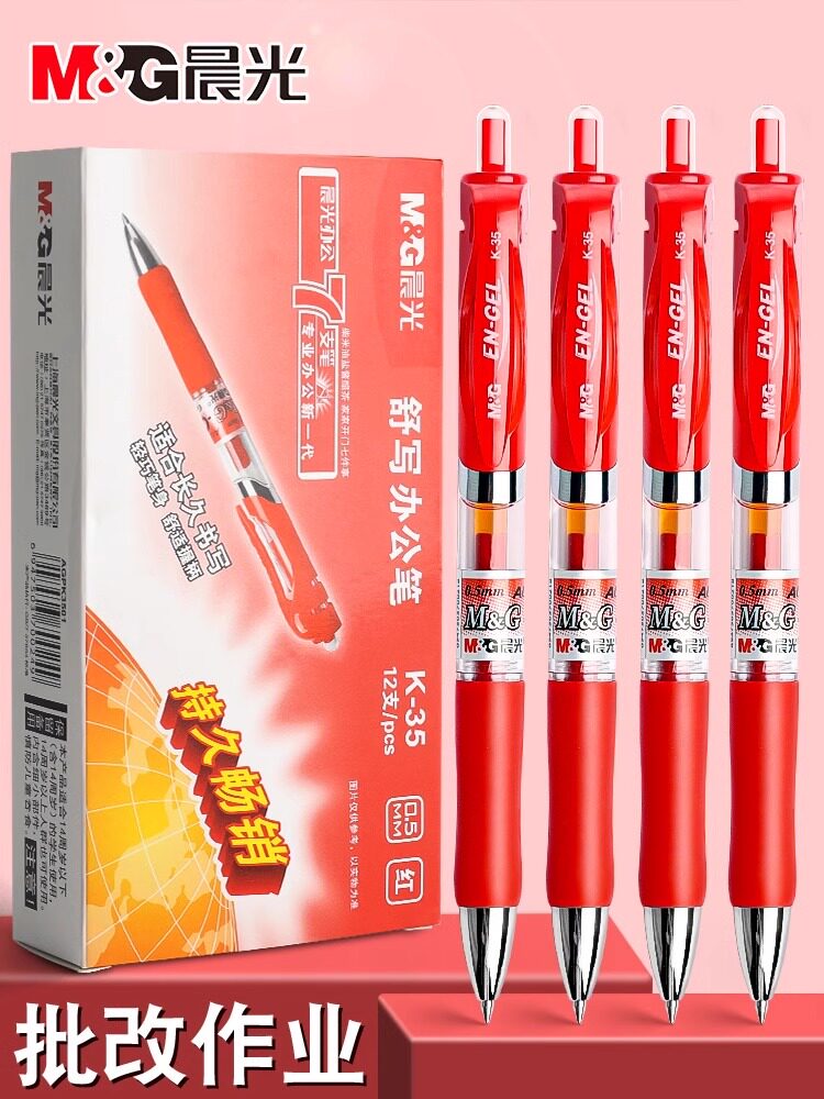 晨光红笔教师批改作业红色中性笔0.5学生重点标记按动笔文具批发