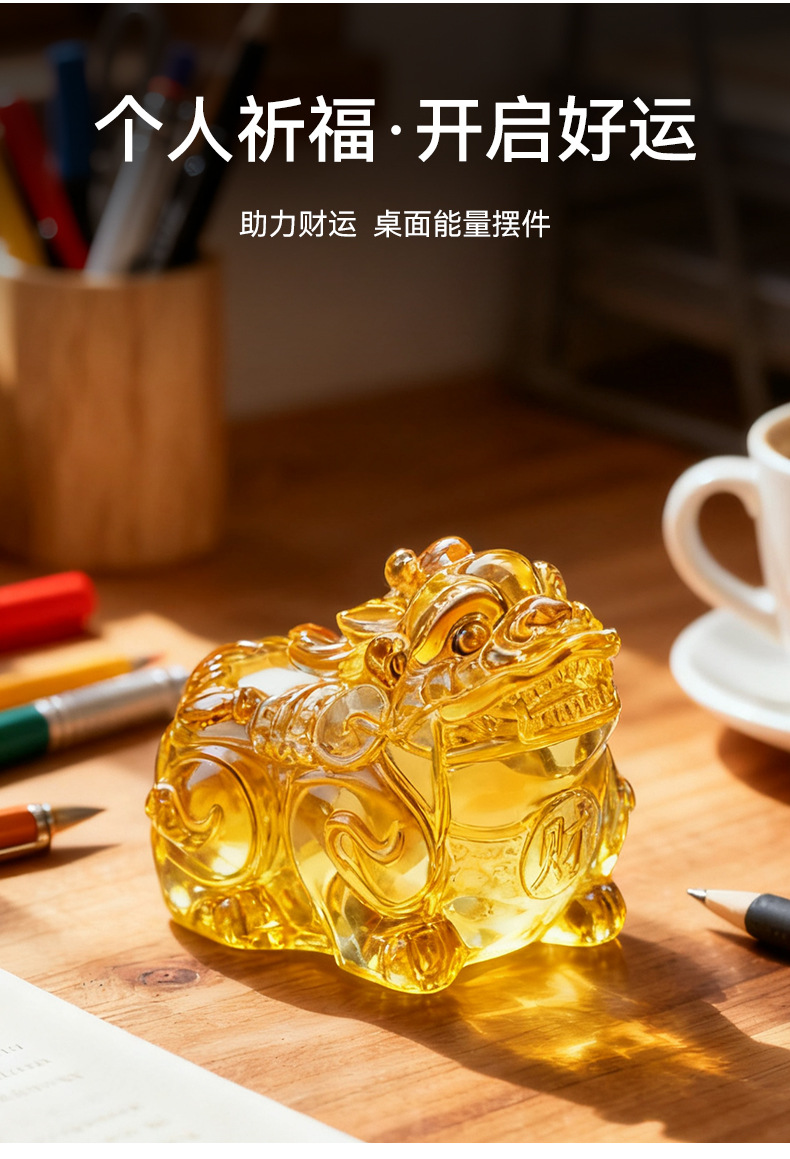 高档水晶貔貅摆件商务礼品招财吉祥物乔迁家居客厅公司开业装饰品