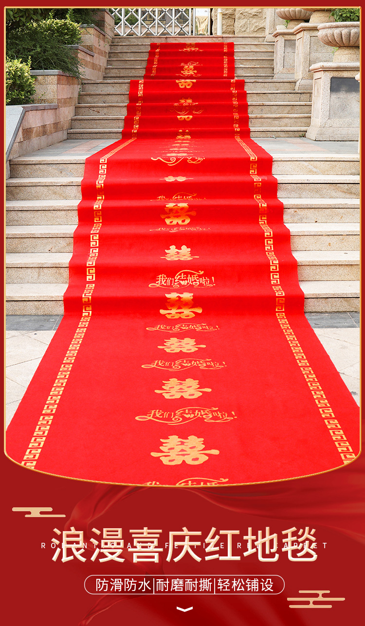 红地毯一次性结婚用带字加厚地毯婚礼婚庆婚礼布置喜庆无纺布楼梯