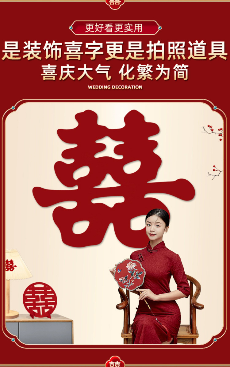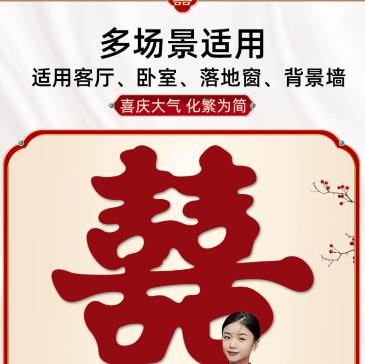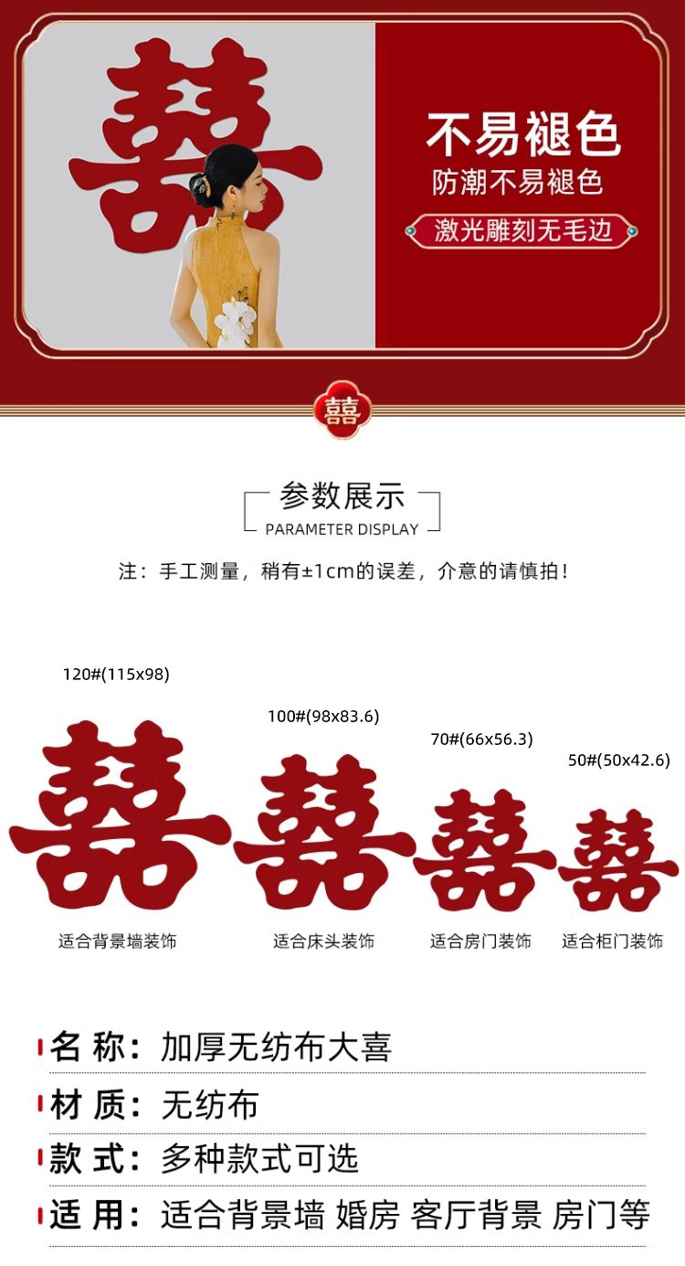 超大1.5米大喜字婚房装饰结婚用品新婚婚礼立体主卧喜字贴布置