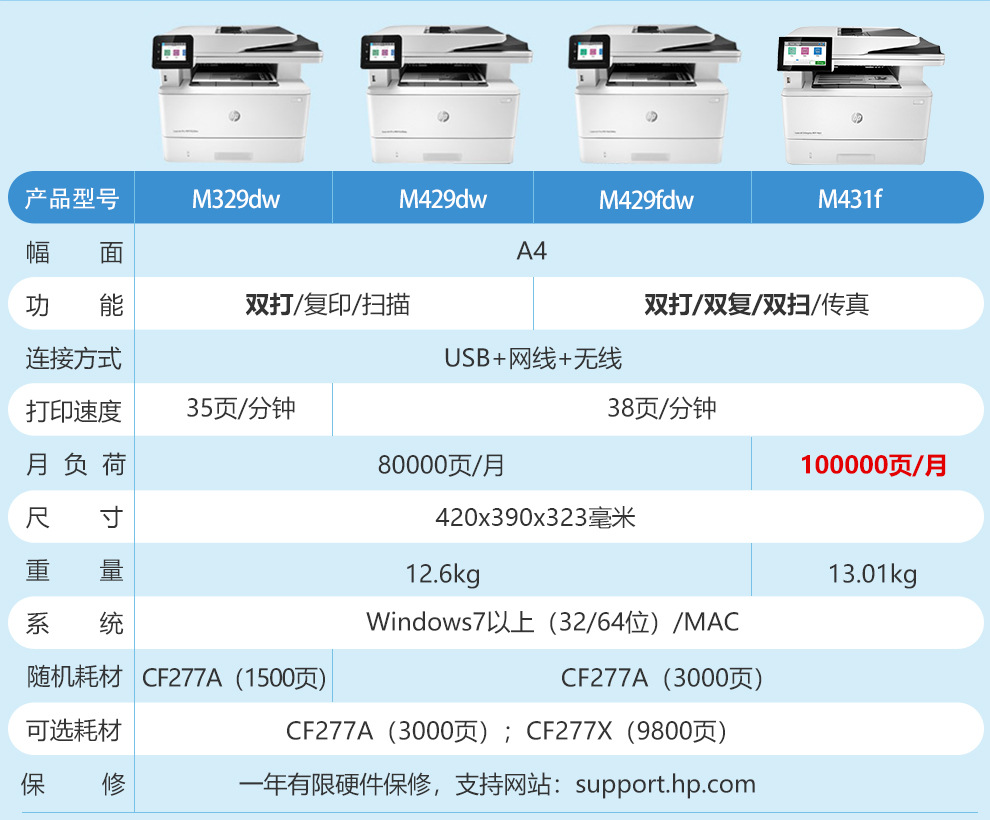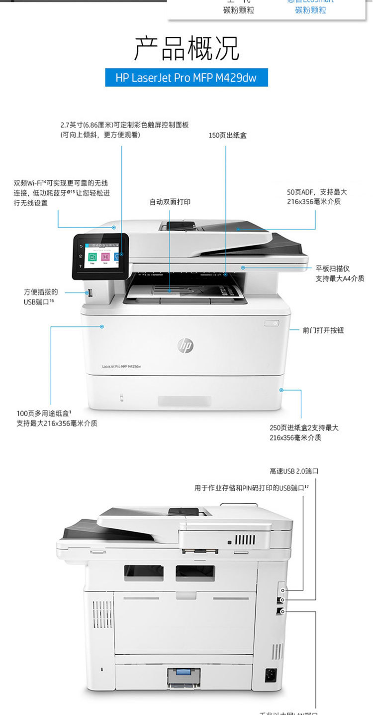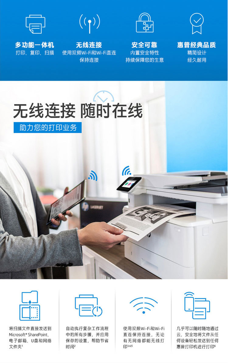 惠普M329dw/M429fdw/4104fdw黑白激光打印机复印扫描双面一体机