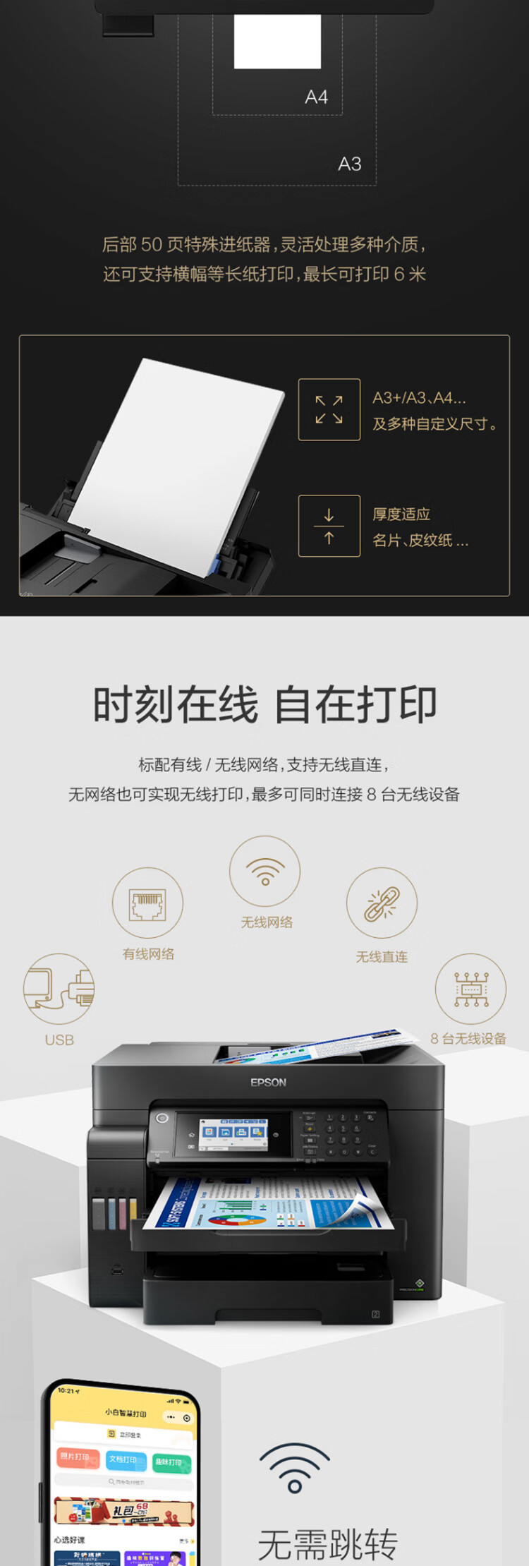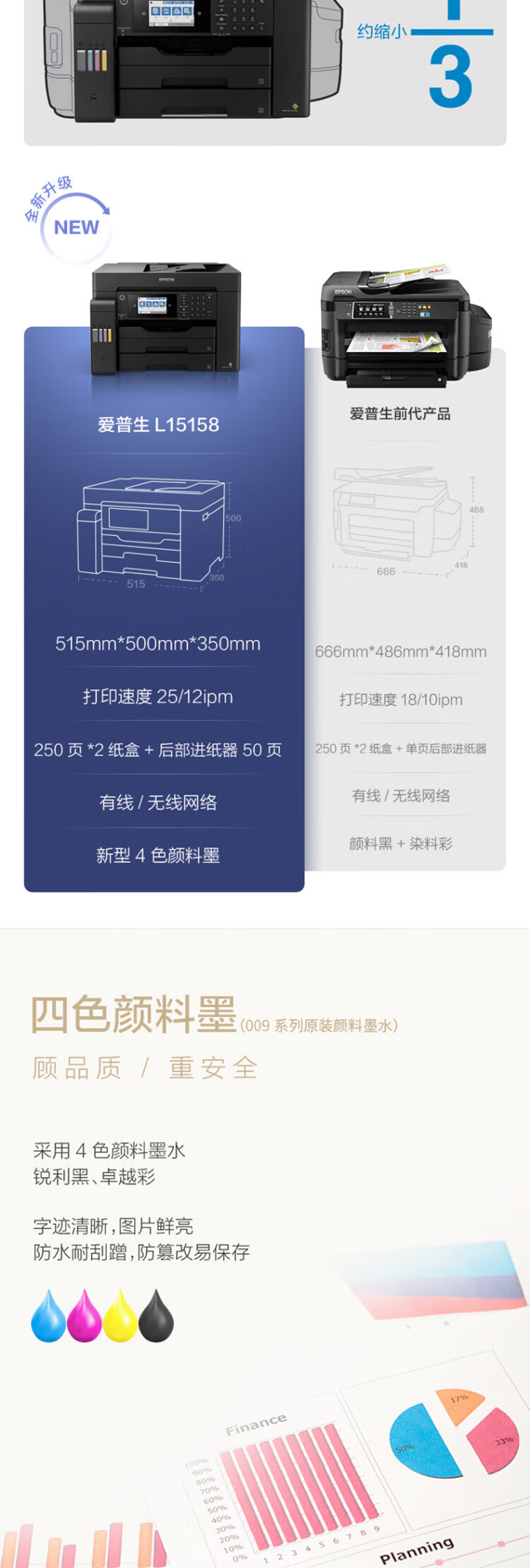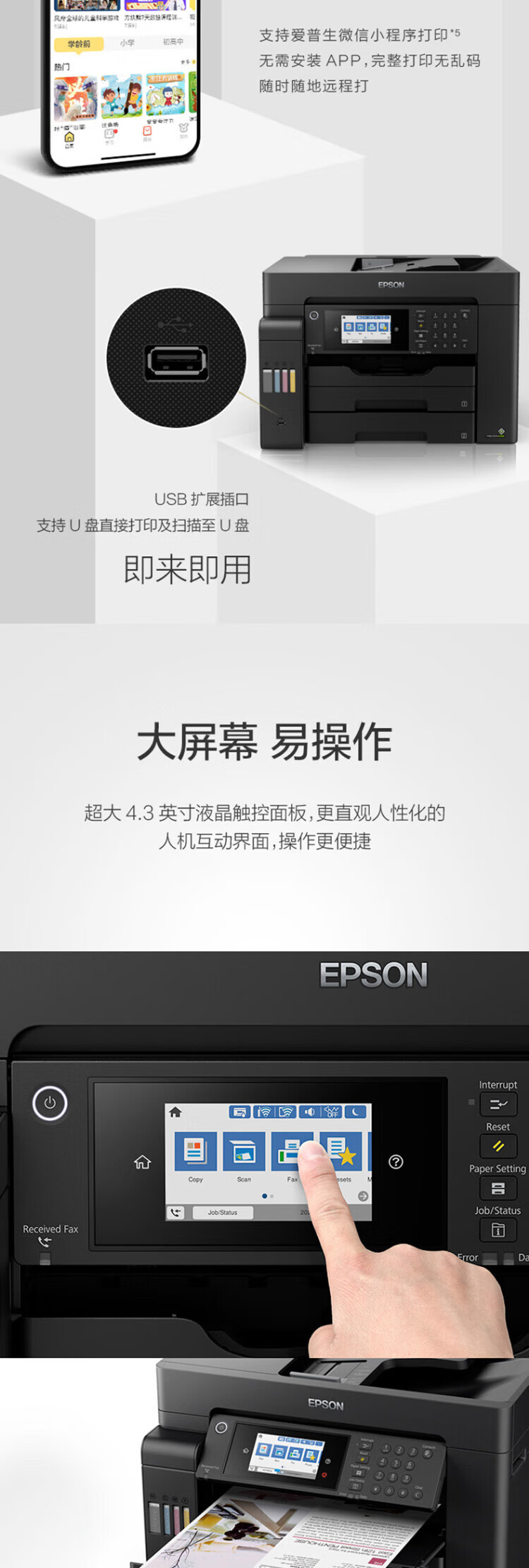 爱普生(EPSON)L15158 A3+ 彩色喷墨墨仓式照片打印机传真一体机