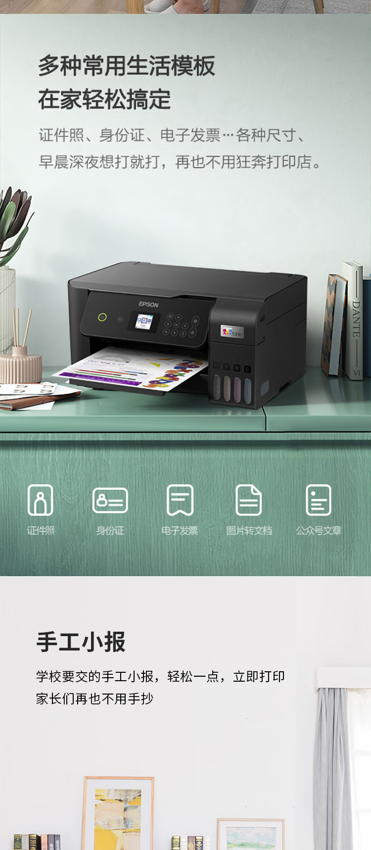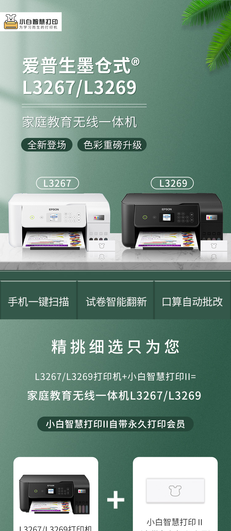 爱普生L3266/L3269/L3267墨仓式打印机a4彩色无线复印扫描一体机