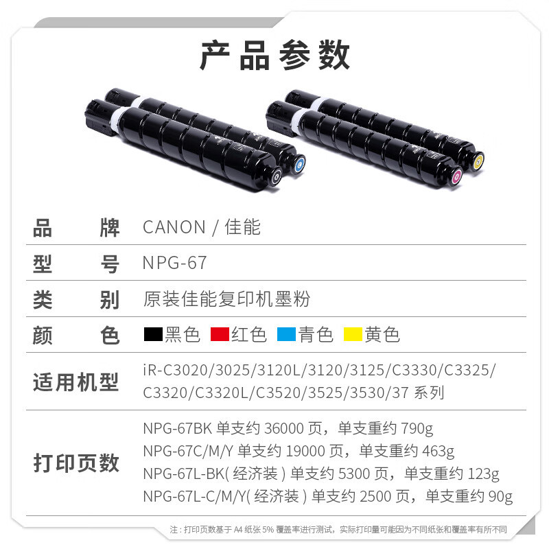 佳能NPG-67原装复合机粉盒c3222/3226/3125/3120/3826硒鼓碳粉盒