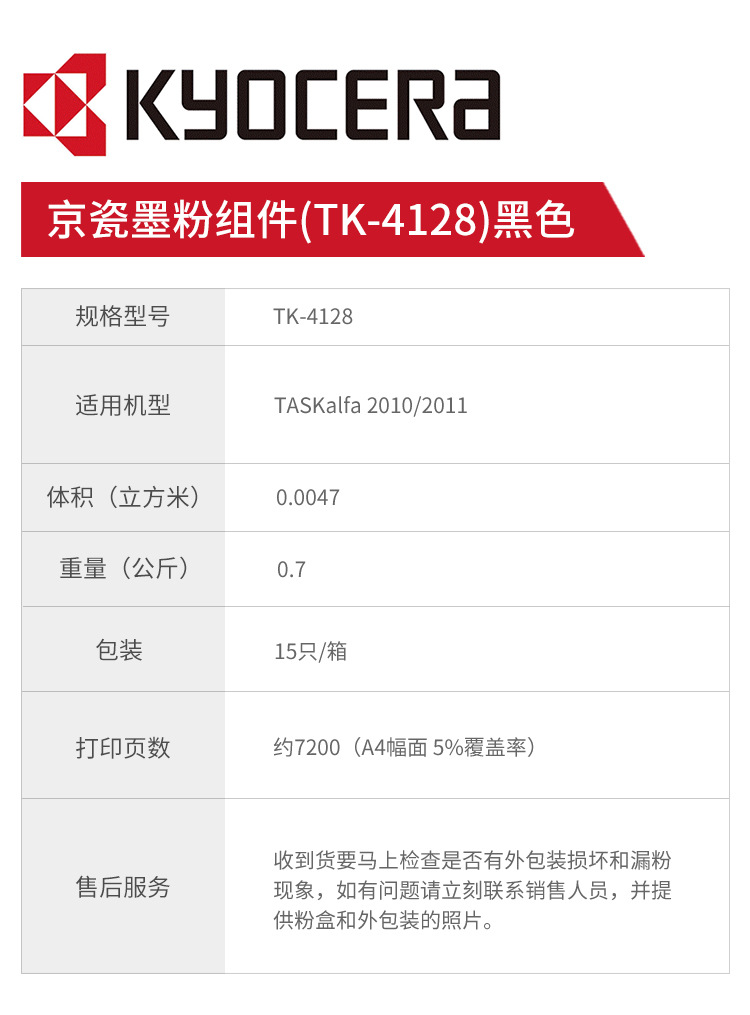 京瓷墨粉组件(TK-4128)黑色/7200页 适用机型2010/2011