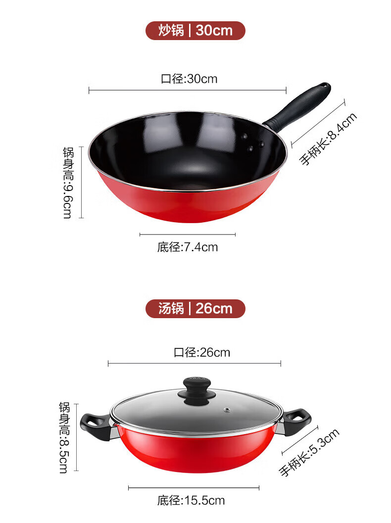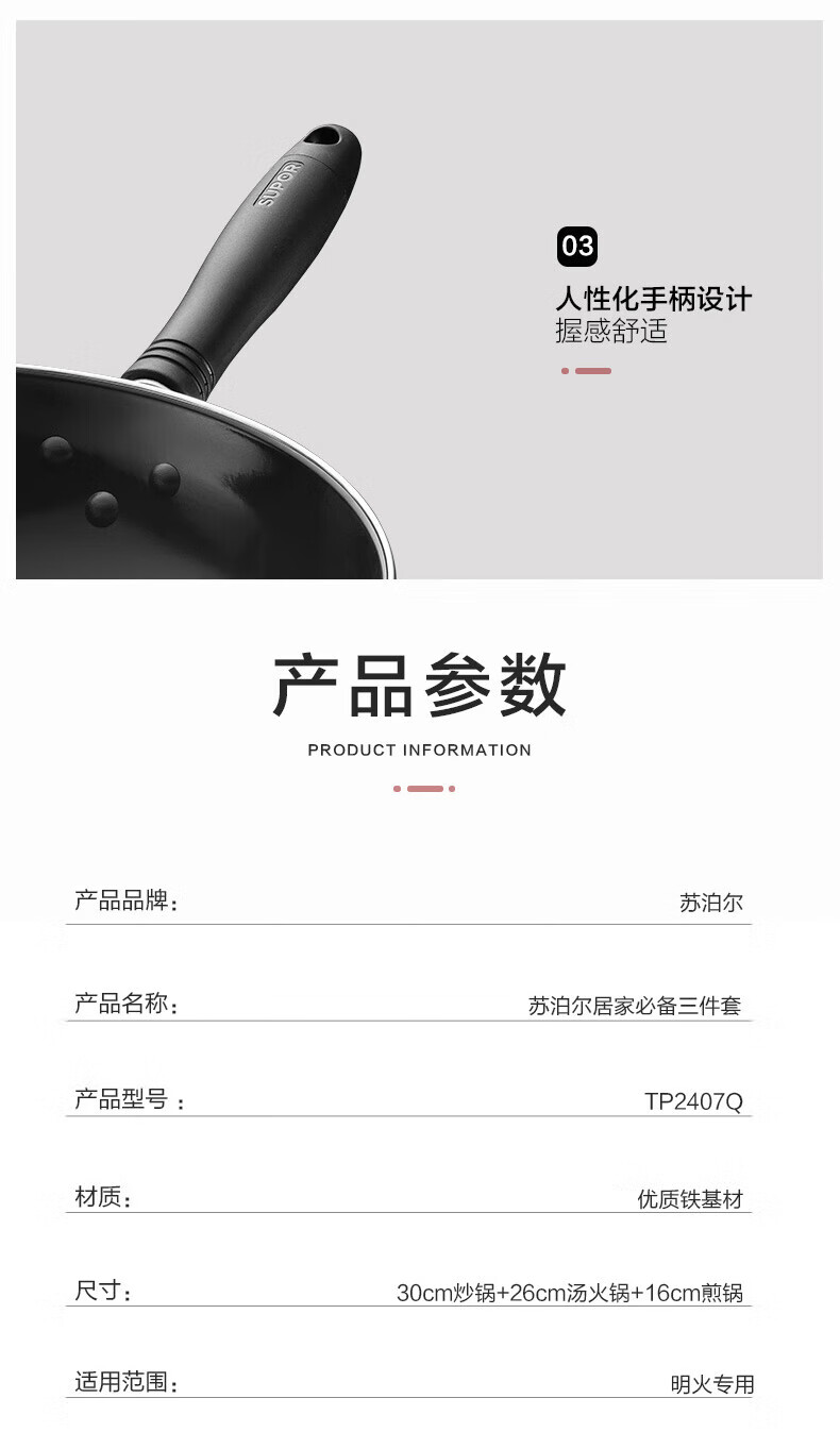 苏泊尔三件套30CM炒锅26CM汤锅16CM煎锅燃气专用锅具套装TP2407Q 三件套 TP2407Q【拍4套整箱发】