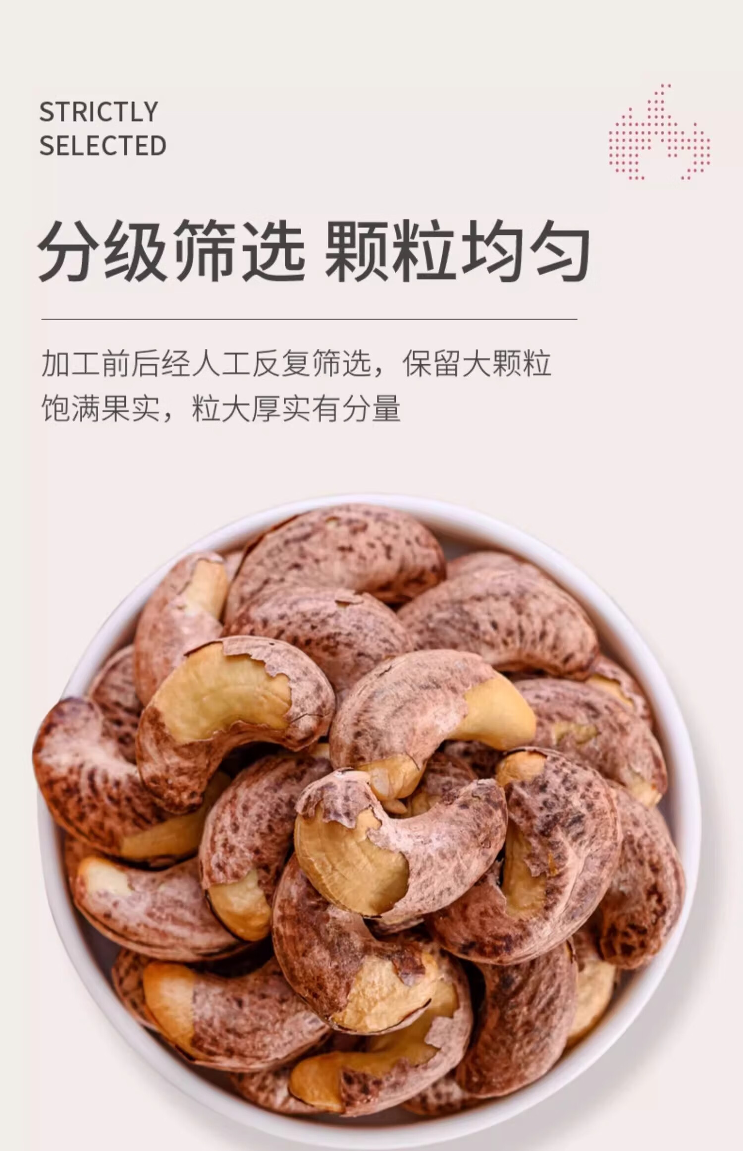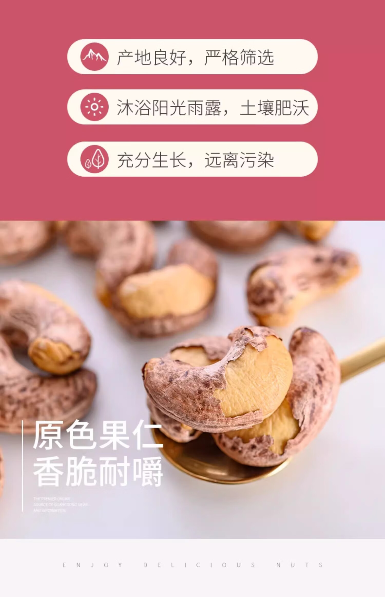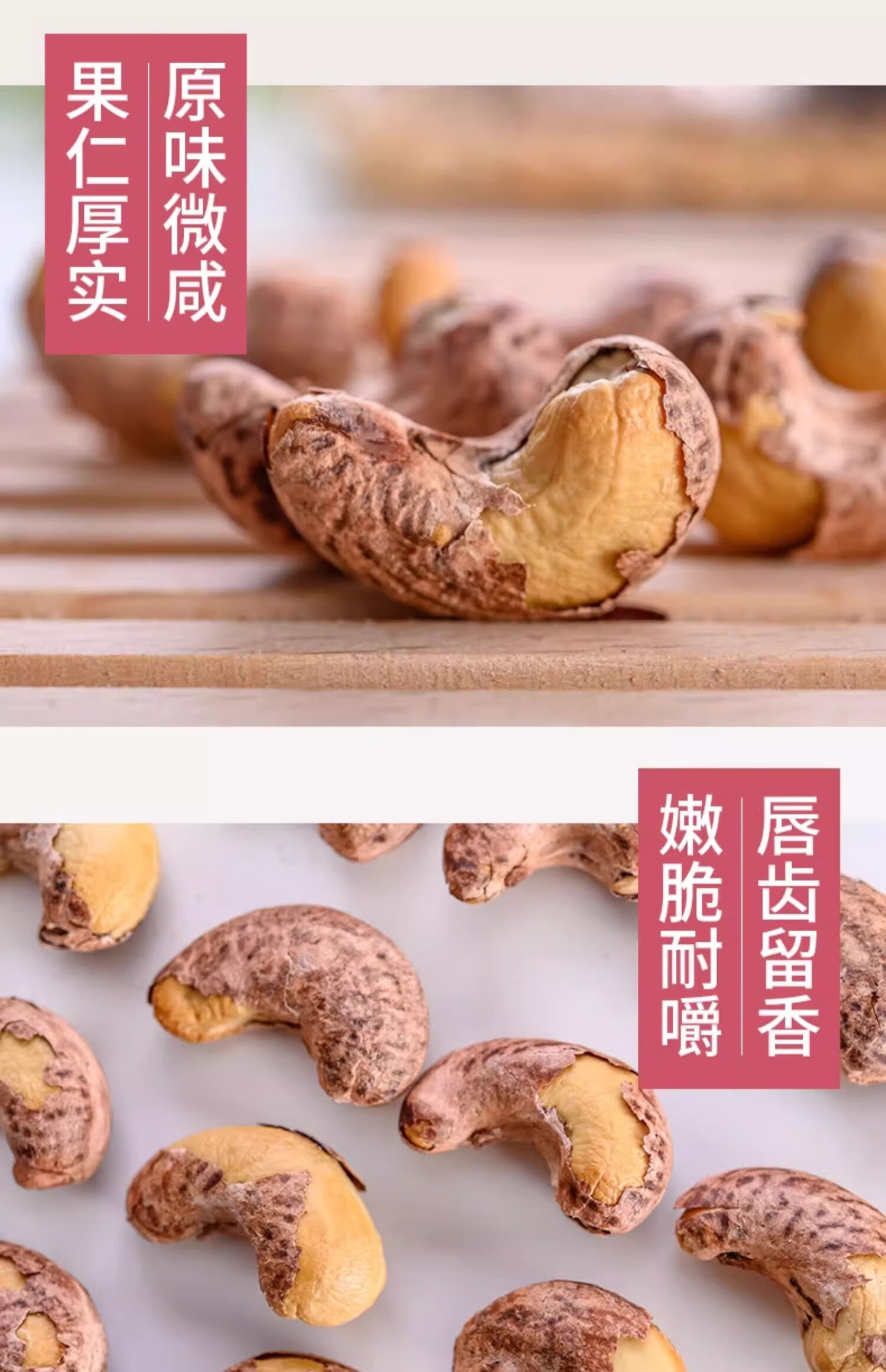 憨豆熊装袋紫皮腰果仁500g 原味每日坚果炒货干果带皮休闲零食年货送礼