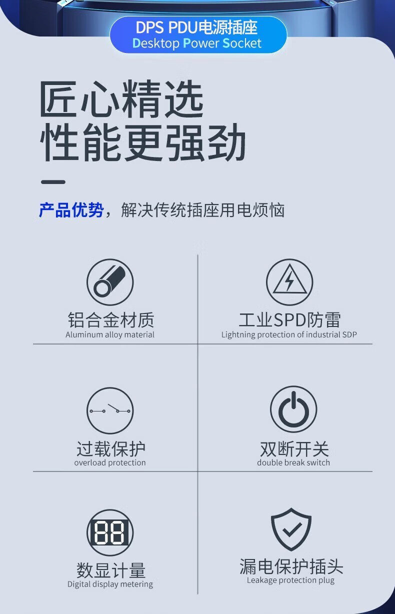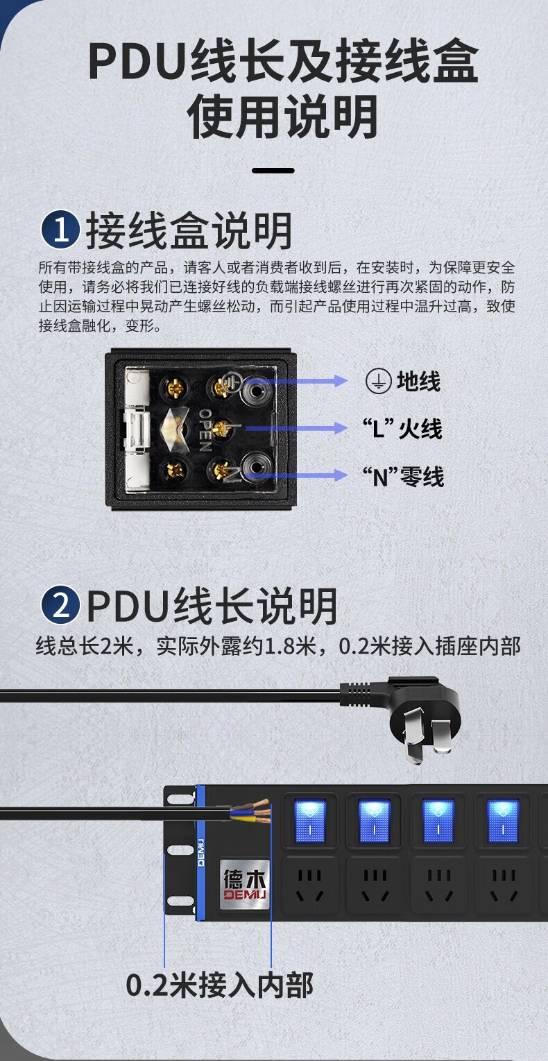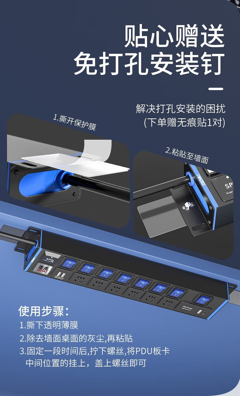 德木(DEMU)pdu插排桌面插排电竞插座防雷分控排插USB独立开关机柜插排免打孔安装 分控 10插位 1.5平2米线