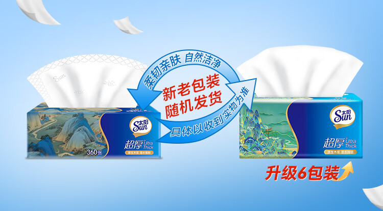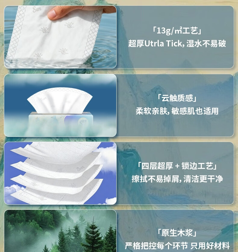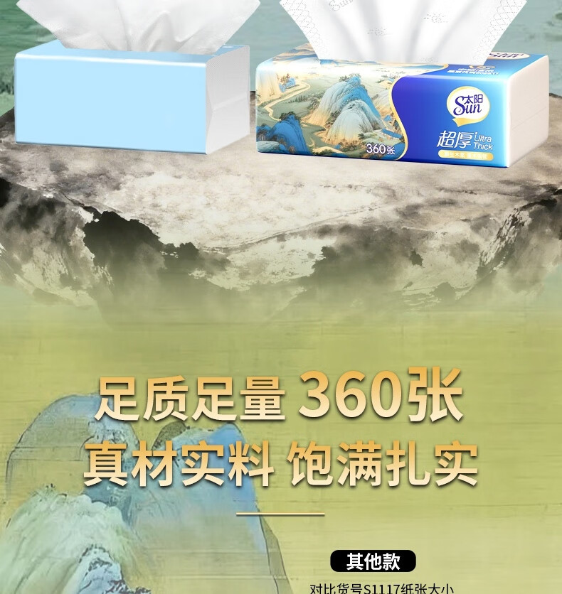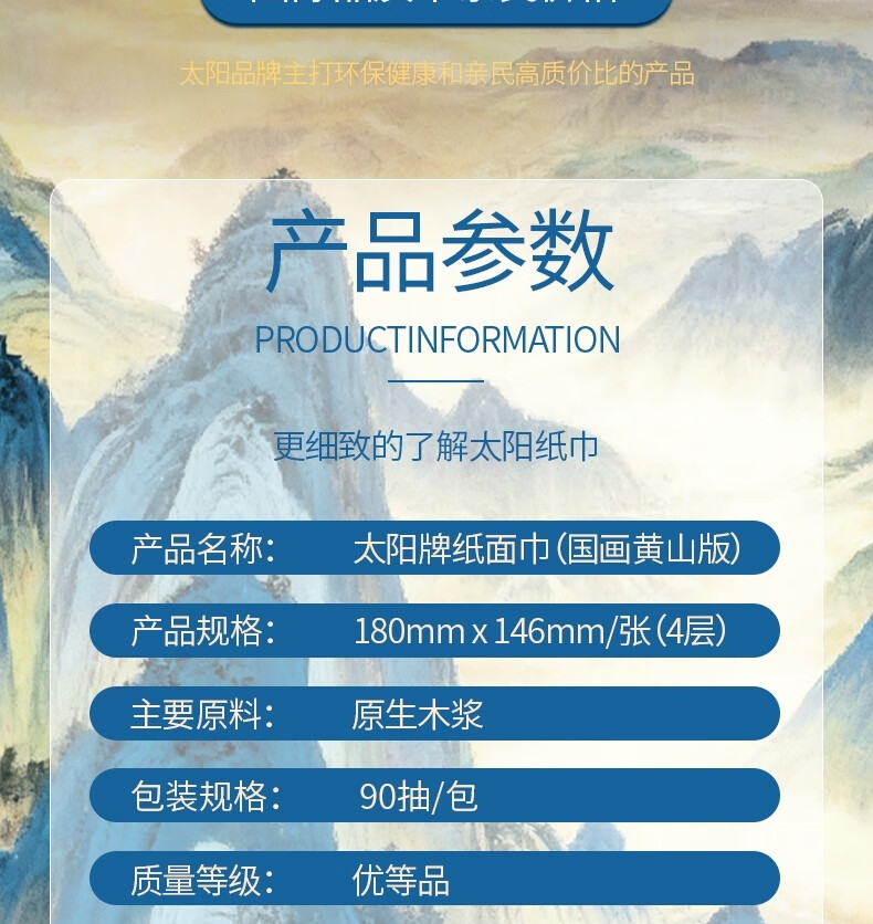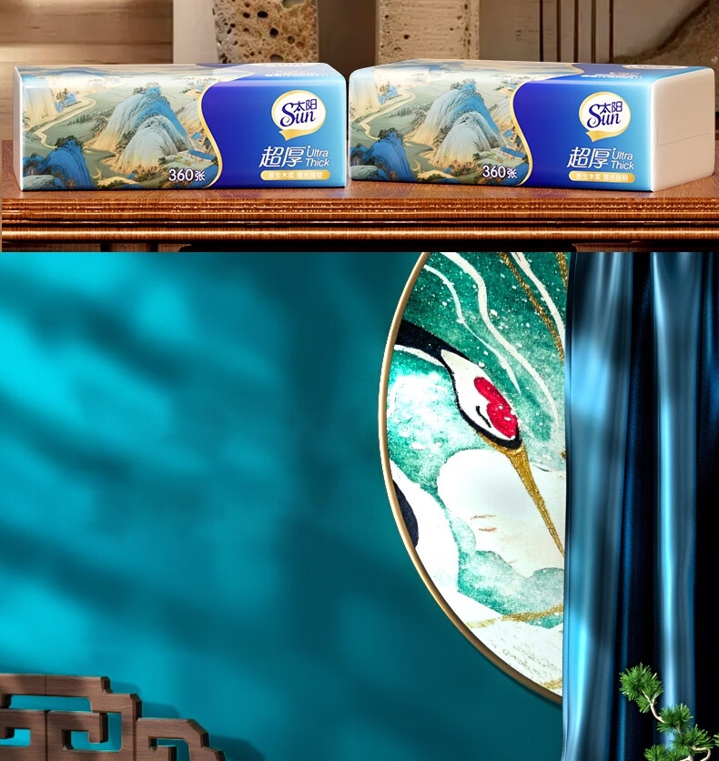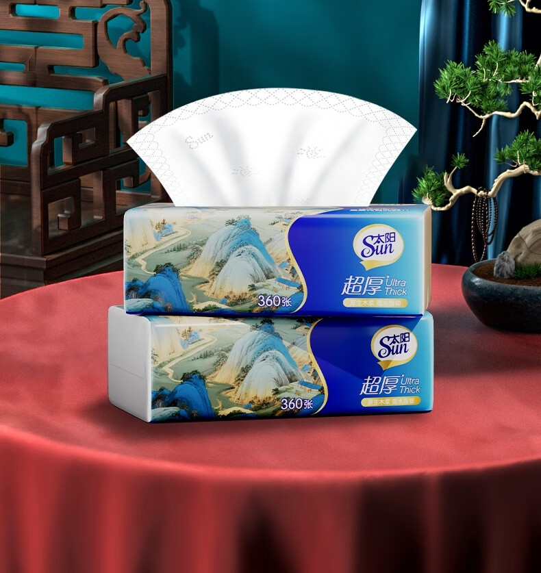 太阳中顺洁柔出品抽纸 国画黄山系列4层90抽5包 纸巾整箱卫生纸餐巾纸