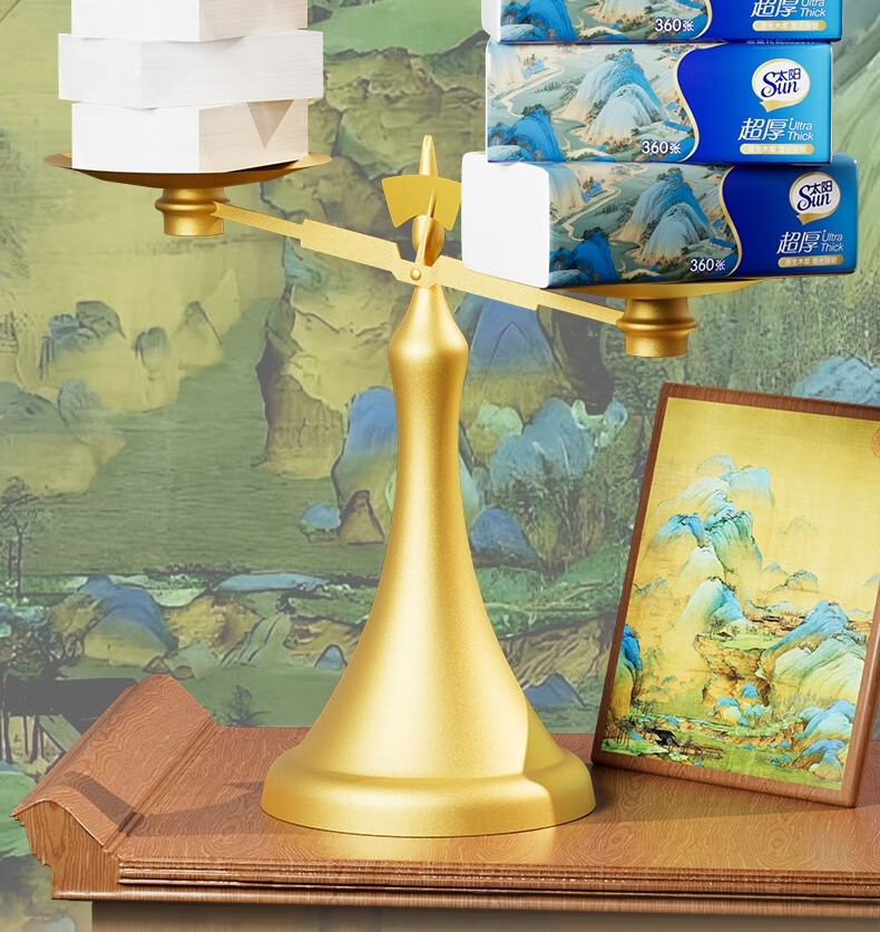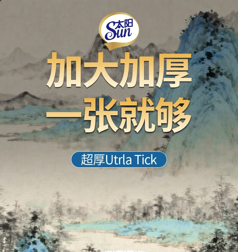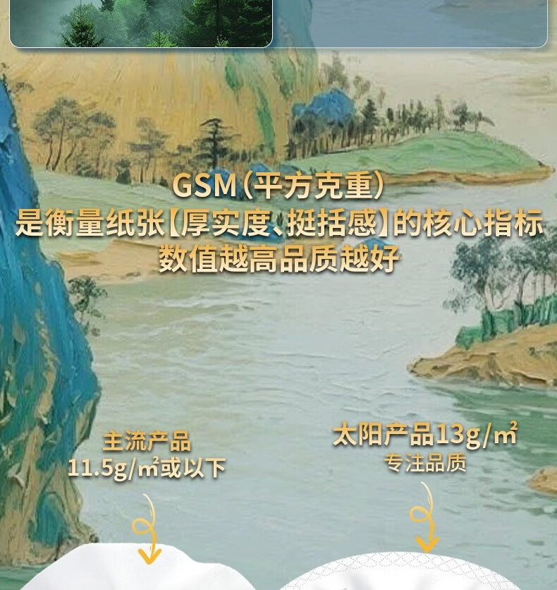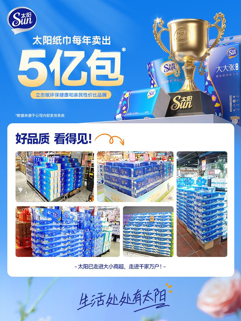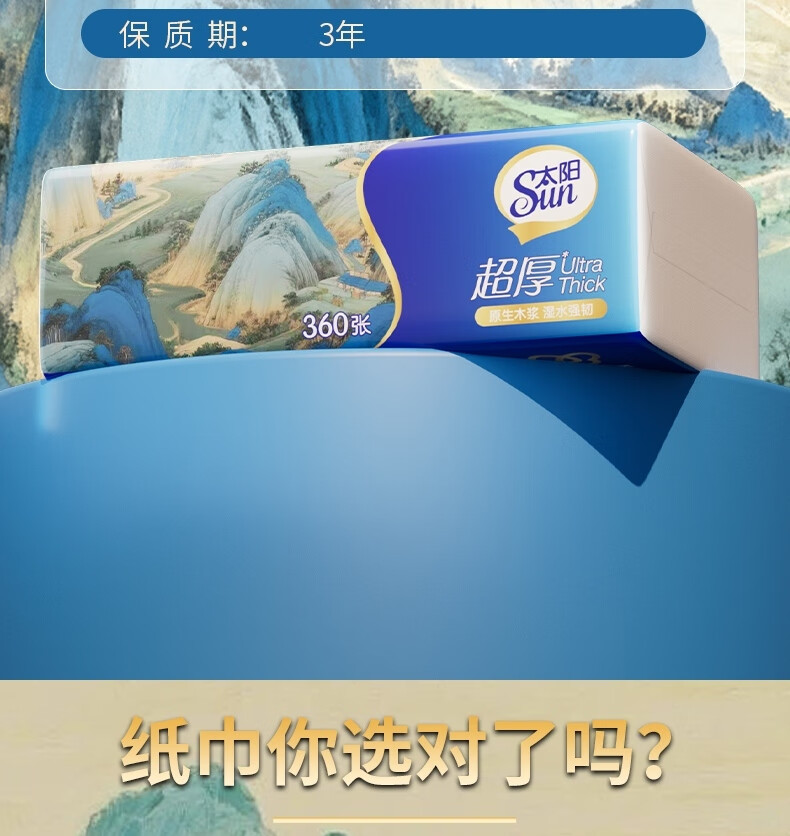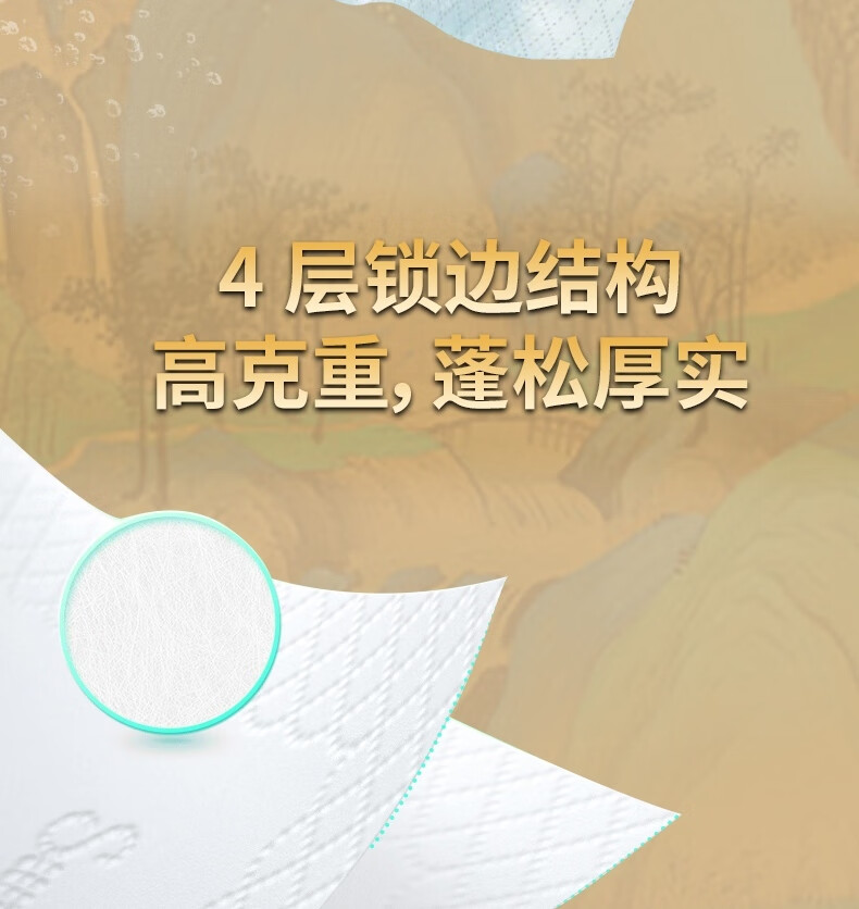 太阳中顺洁柔出品抽纸 国画黄山系列4层90抽5包 纸巾整箱卫生纸餐巾纸