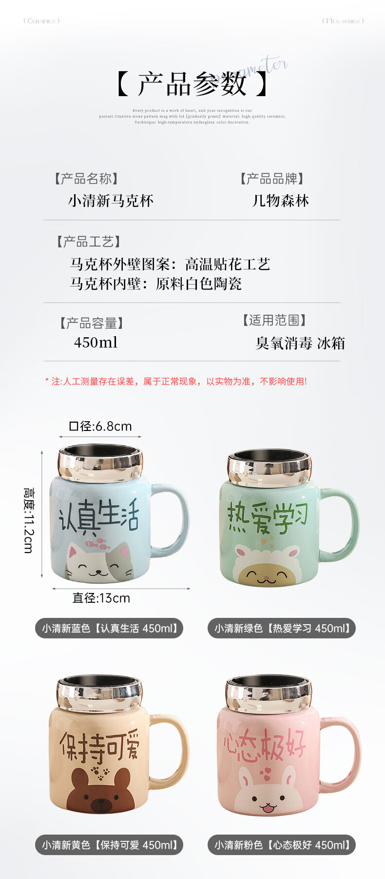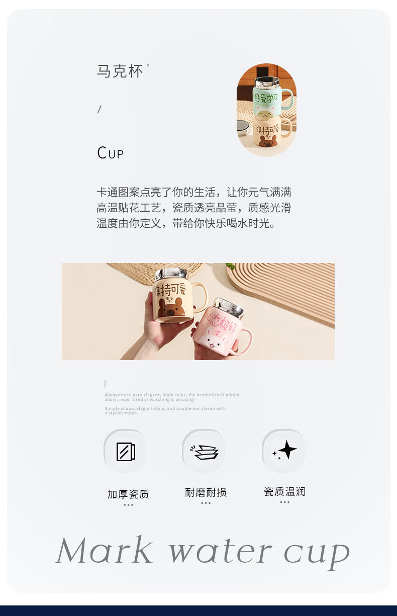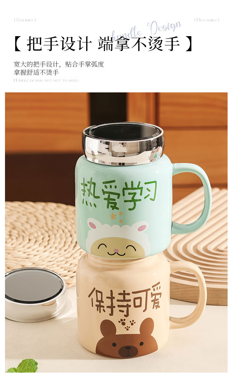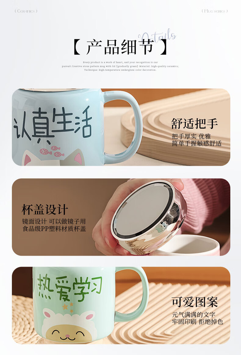 几物森林 陶瓷马克杯喝水杯子咖啡杯情侣杯早餐杯茶杯男女 认真生活蓝色