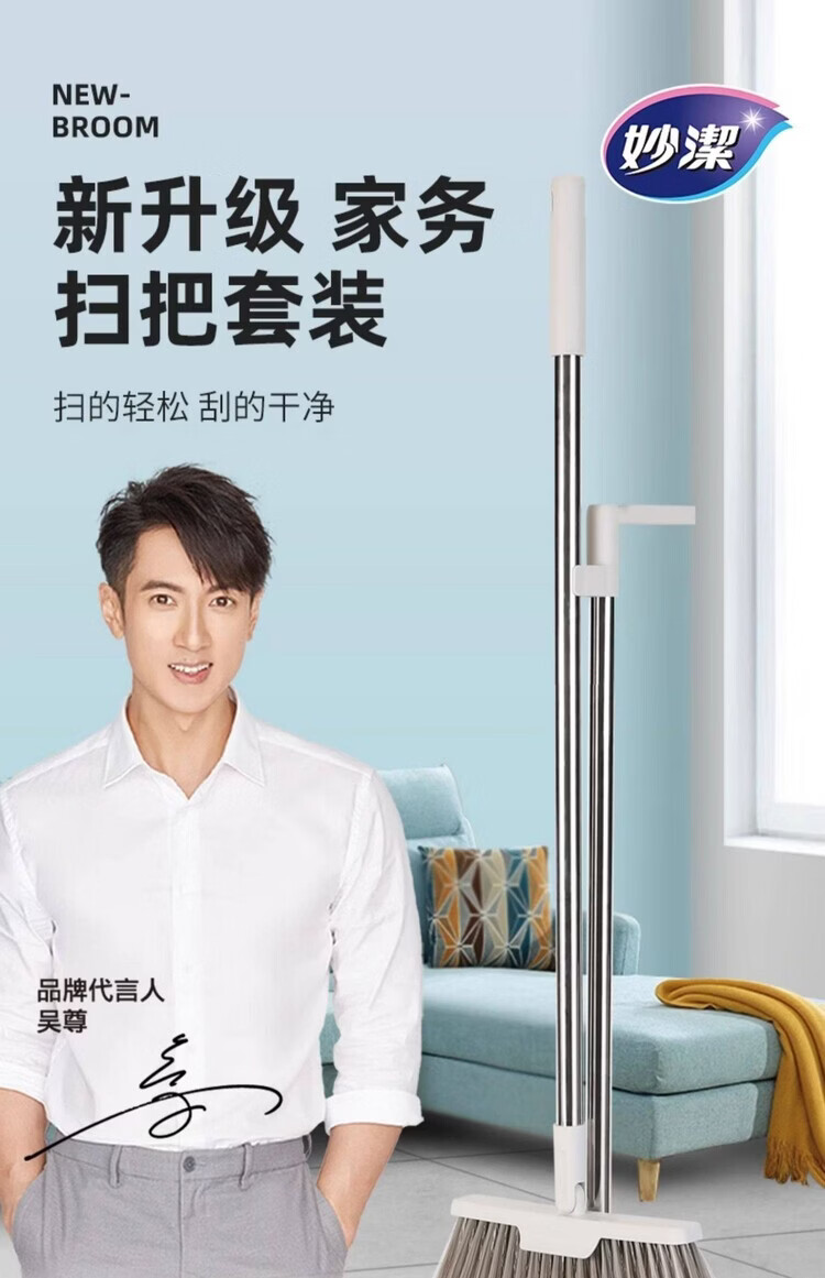 妙洁扫把套装扫帚家用簸箕扫地神器带梳齿扫帚簸箕组合魔术扫把 长齿梳扫把簸箕一套