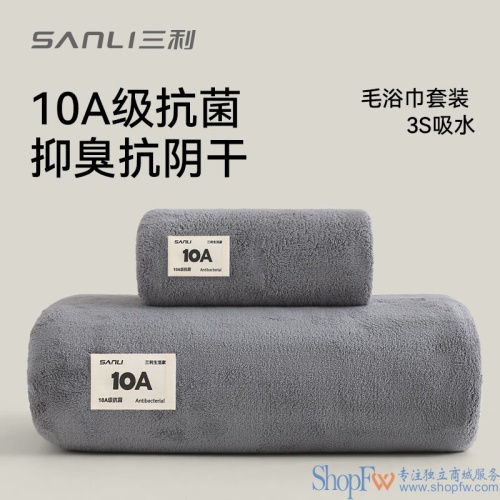 三利10A抗菌毛巾浴巾套装男士洗澡专用吸水速干大人女生大浴巾 灰