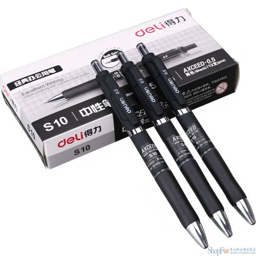 得力S10中性笔办公签字笔12支/盒0.5mm弹簧头按动一件代发笔芯