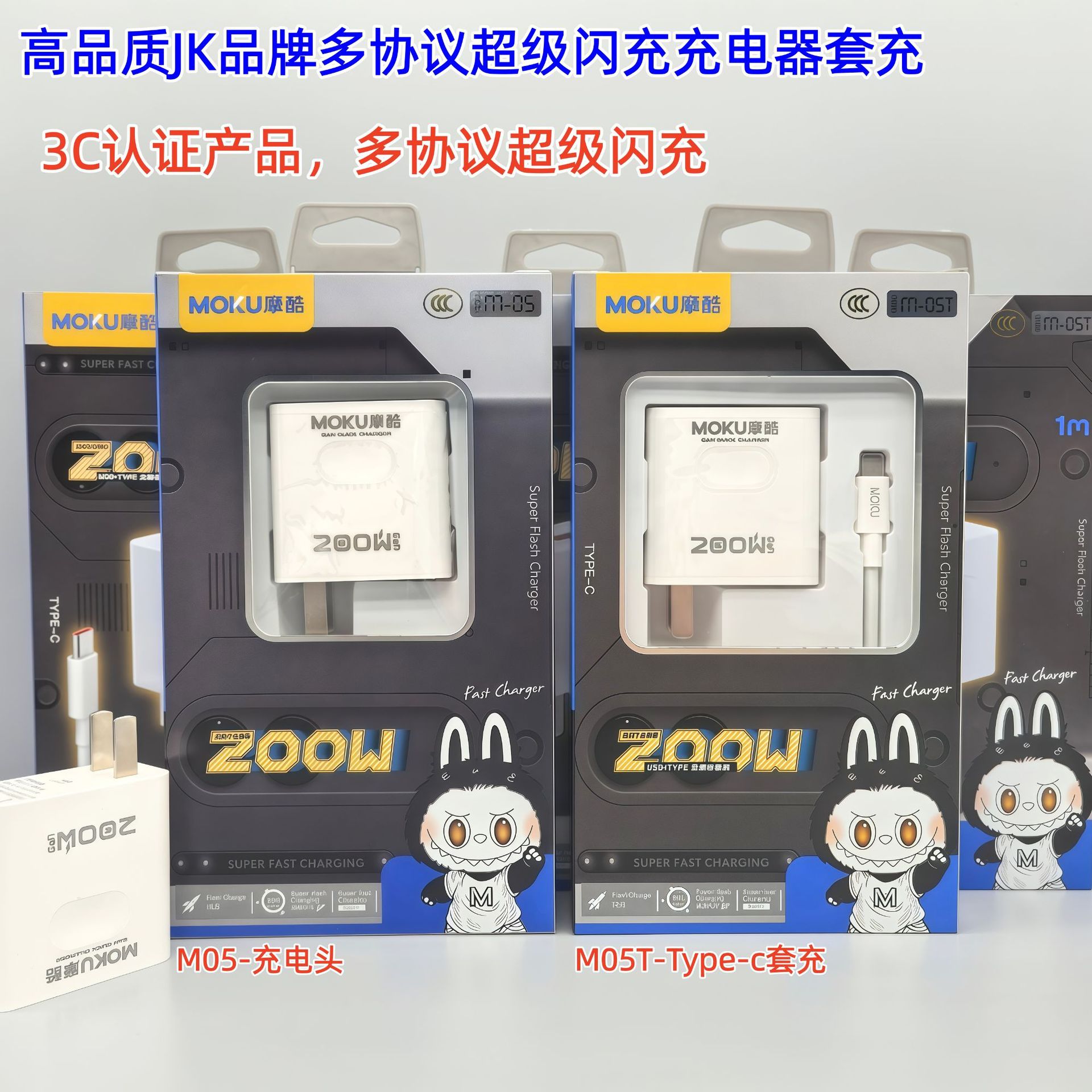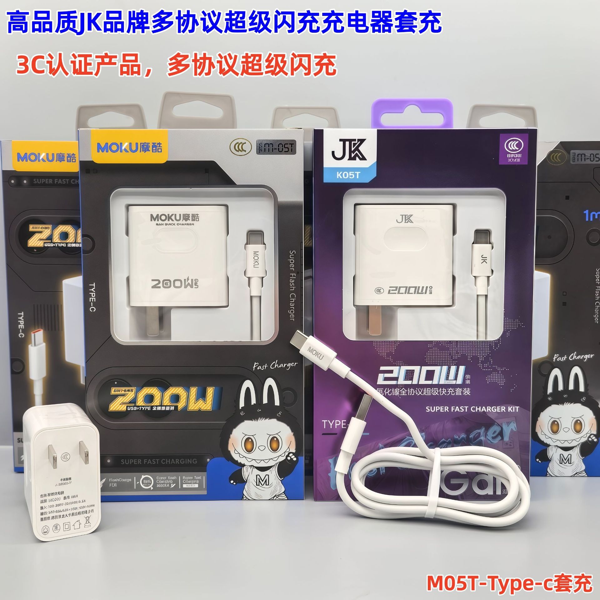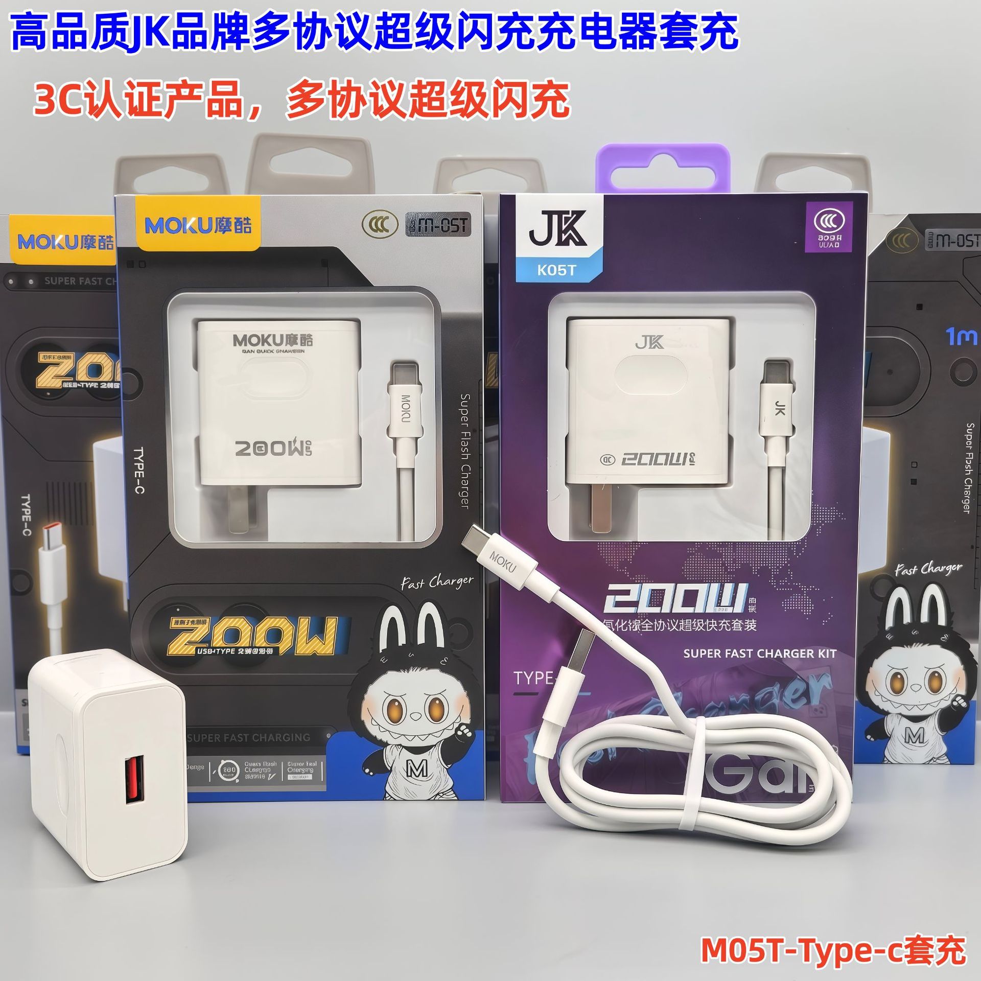 200W手机充电器全兼容快充闪充充电头适配器套装 3C认证 带包装