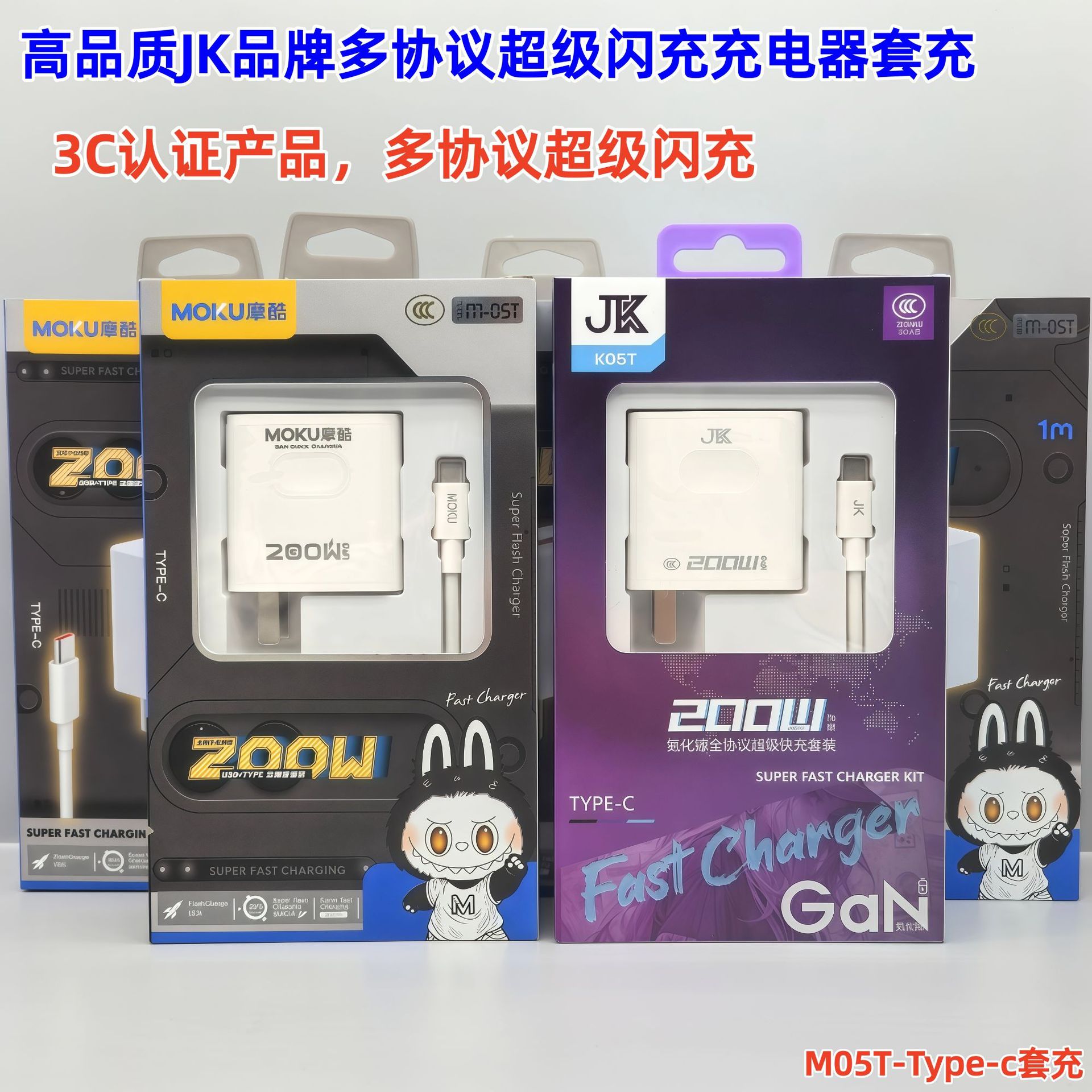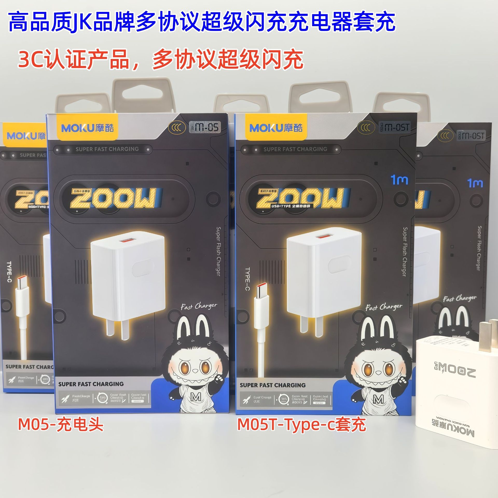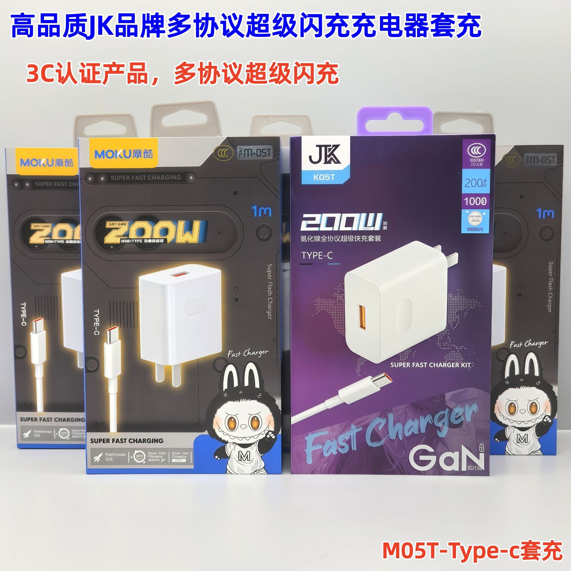 200W手机充电器全兼容快充闪充充电头适配器套装 3C认证 带包装