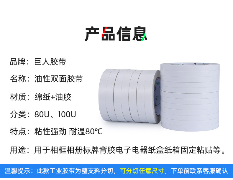 强力油性双面胶相框信封高粘双面胶影楼用双面胶带长20米