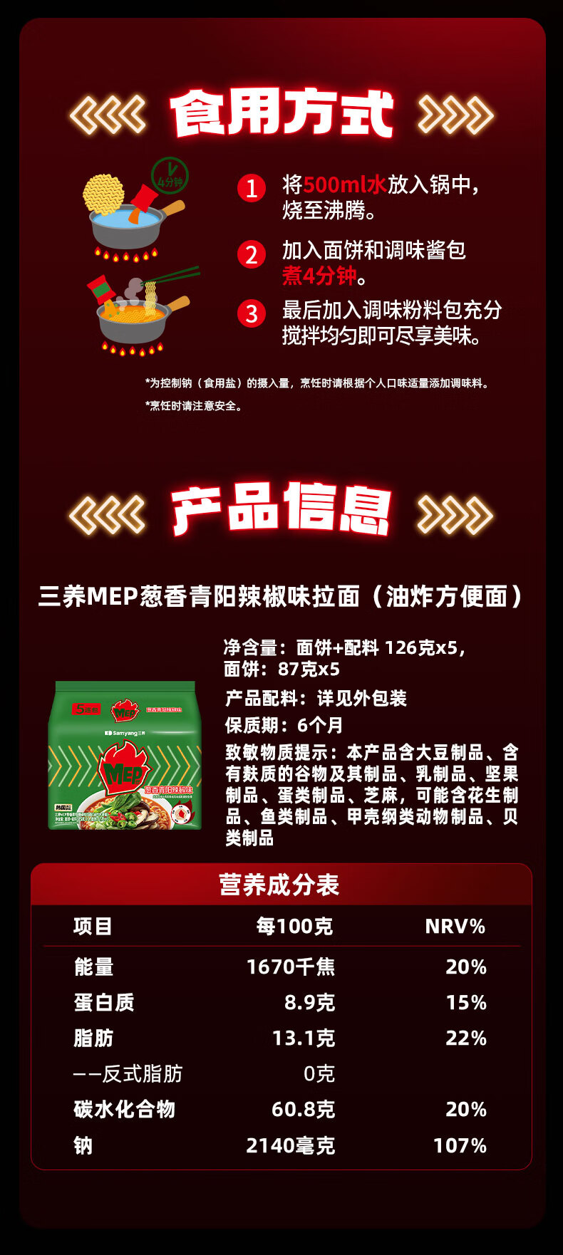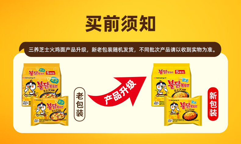 三养火鸡面韩国进口方便面超辣夜宵干拌面速食 韩式经典原味火鸡面140g*5袋
