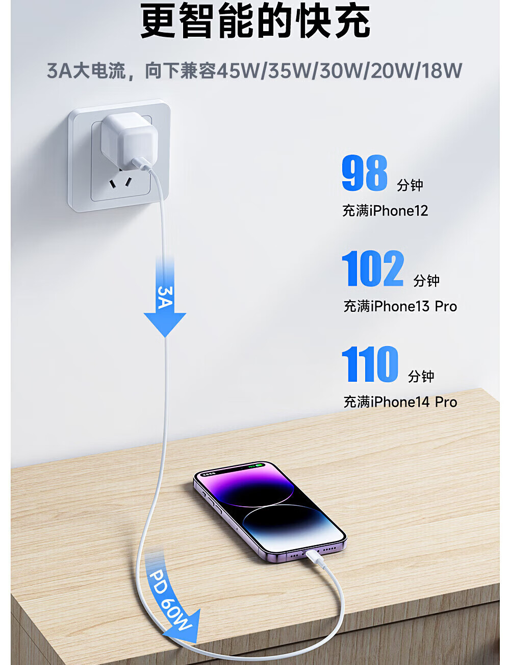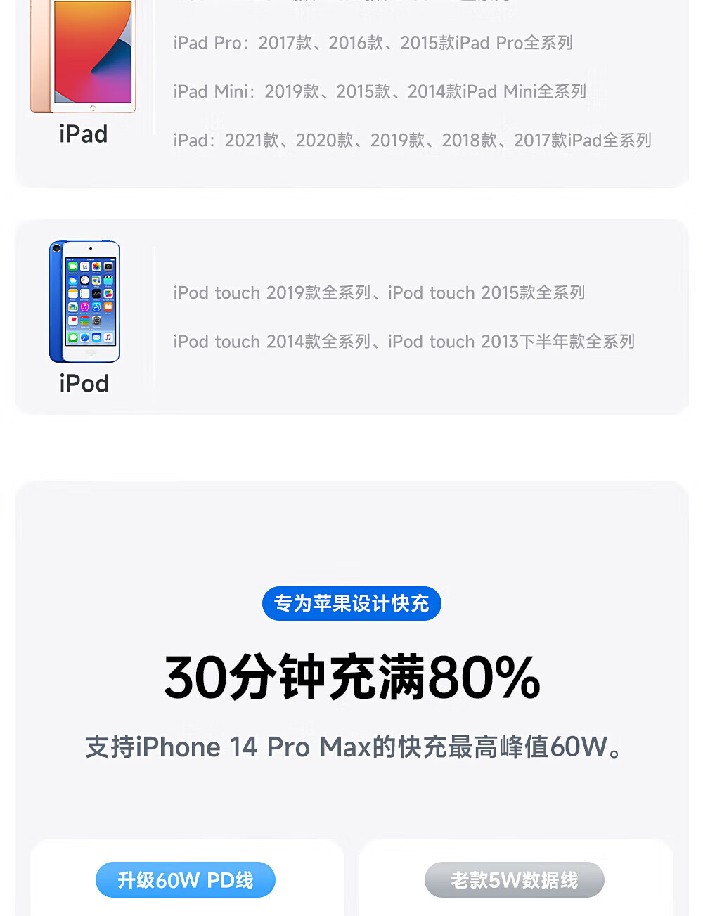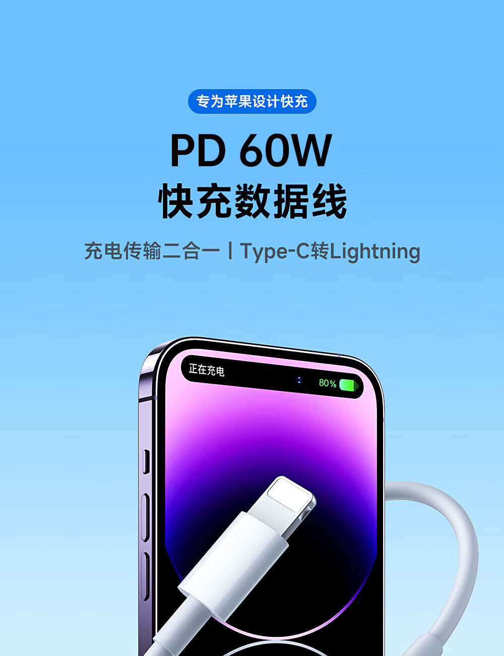【原充正品】苹果充电线60W快充适配原装数据线iPhone14/13promax/12/11/8/XR手机充电器 【苹果8-14全系】PD60W丨1米闪充线