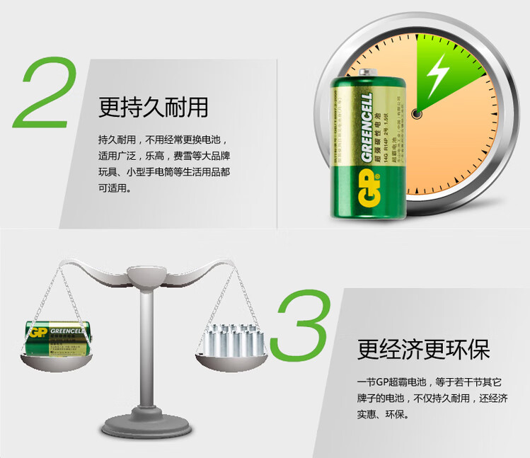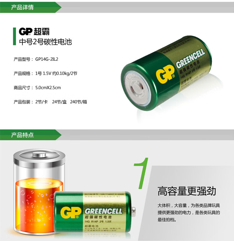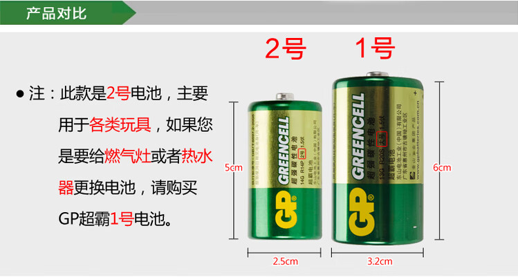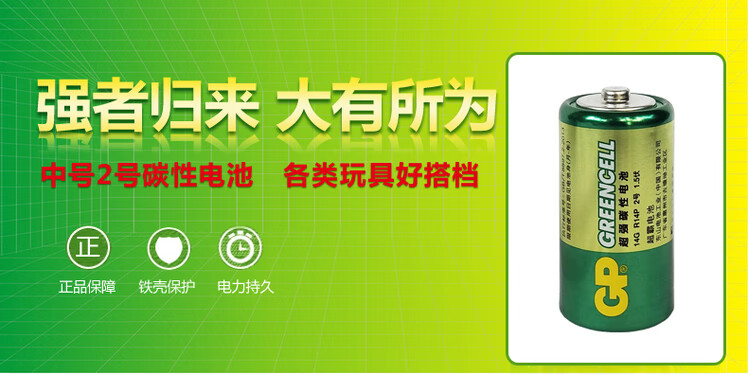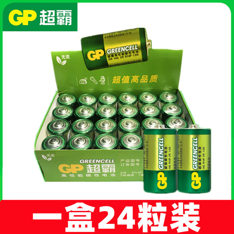超霸(GP)超霸GP2号原装电池万用表座钟C型中号R14二号原装电池3号1.5v碳性 1节装
