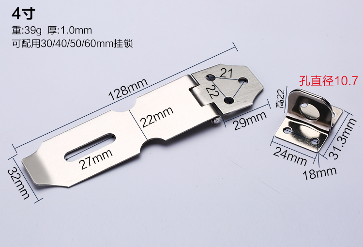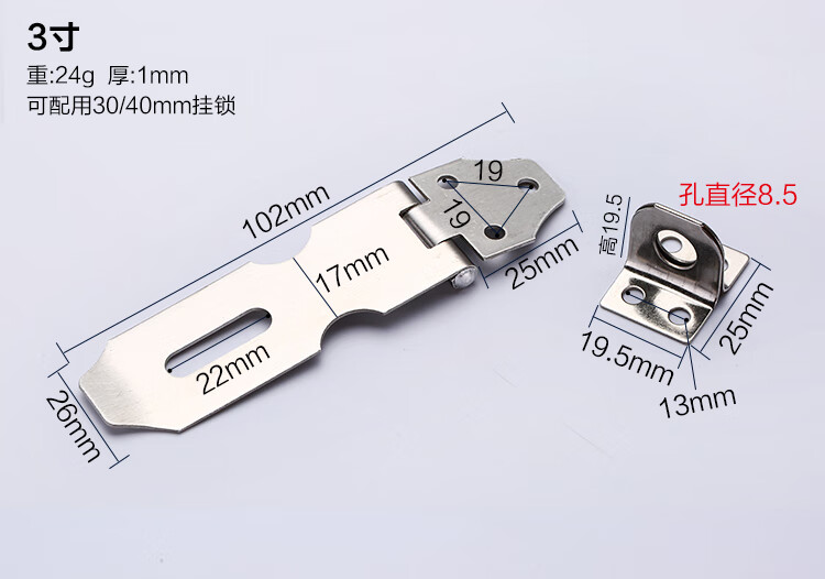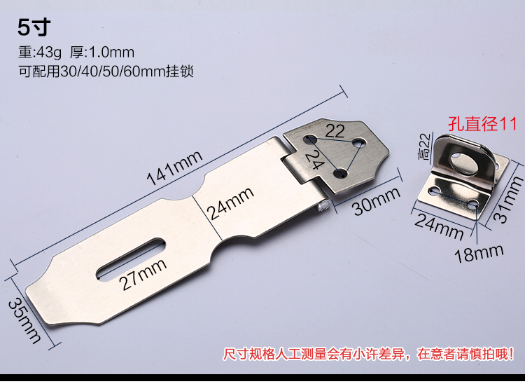 拾致(shizhi)不锈钢锁扣门扣门鼻子防盗门扣插销挂锁搭扣锁牌锁扣搭片锁挂锁扣 【2.5寸】