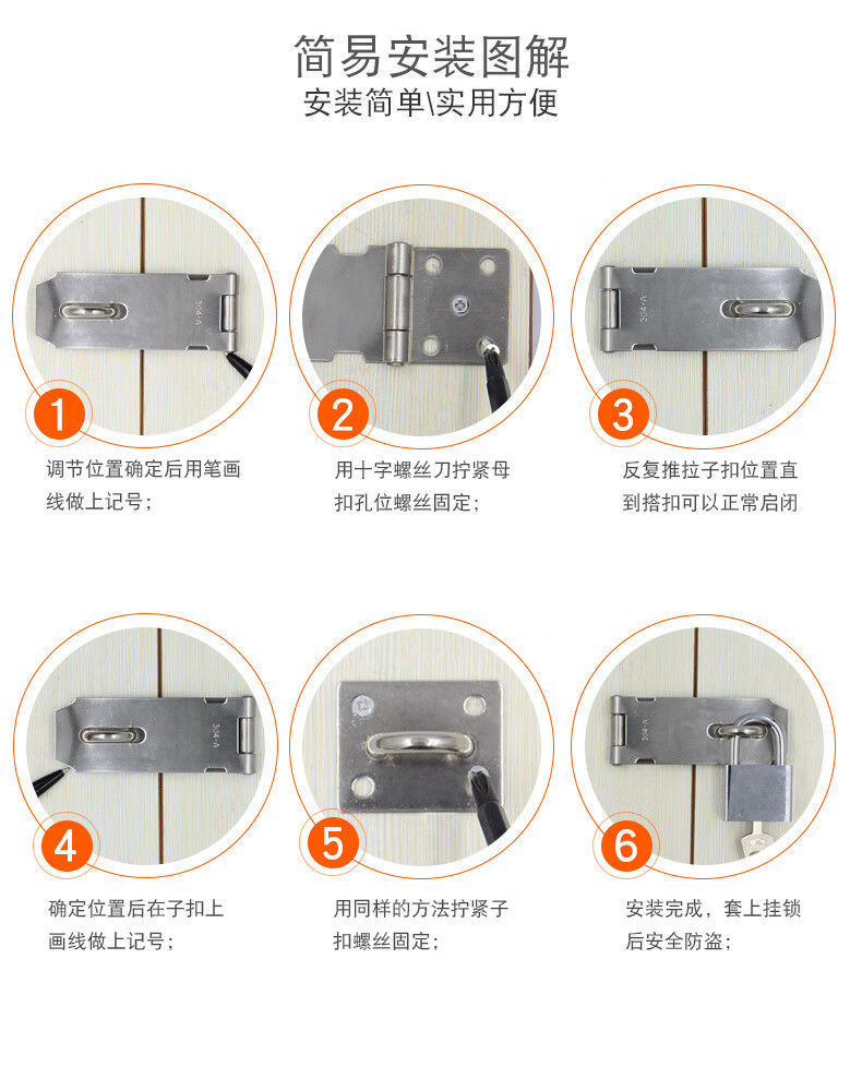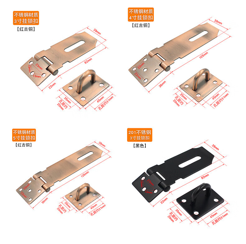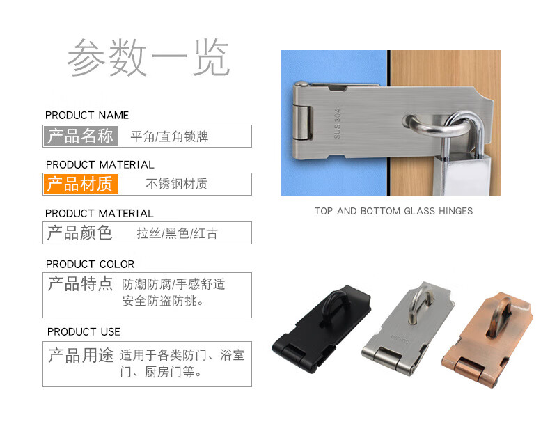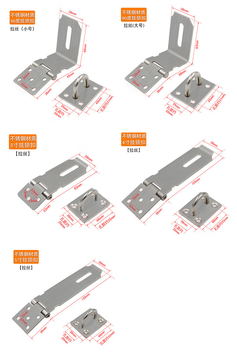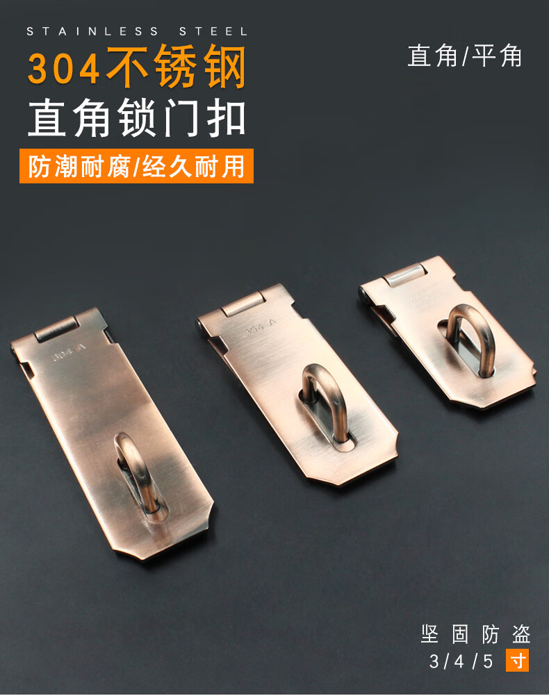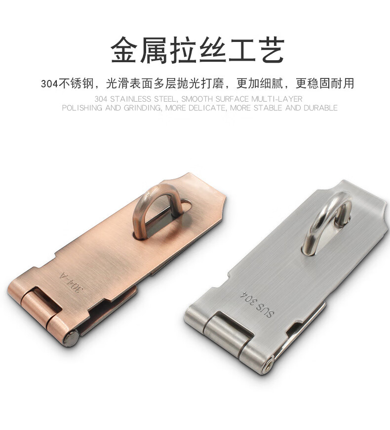 BOLLEYA不锈钢加厚锁扣塔扣柜门抽屉锁牌防盗门老式木门挂锁门栓门鼻门扣 304加宽加厚锁牌5寸