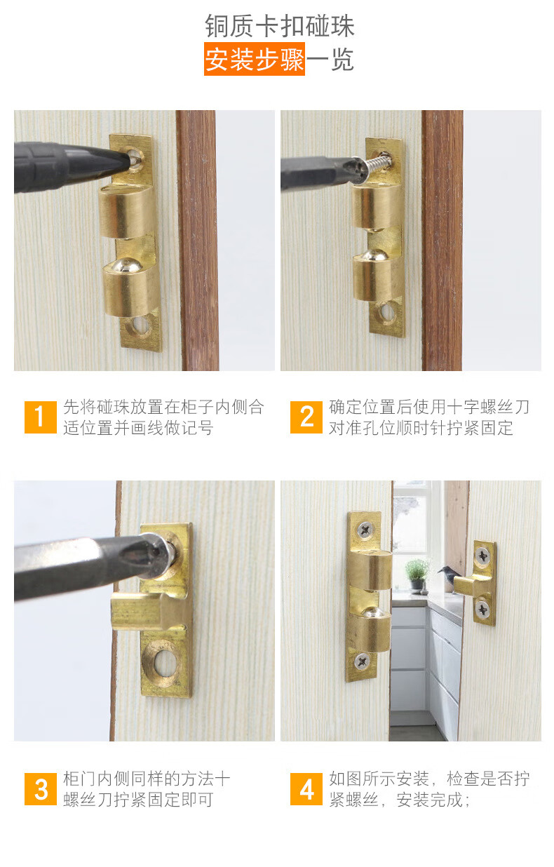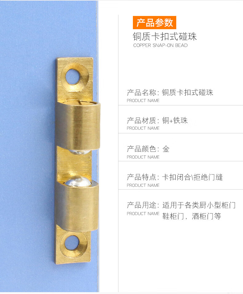 BOLLEYA铜柜门碰珠铜卡碰珠厨门碰珠柜门吸柜银色铜碰珠40506070MM 黄色铜碰珠小号40mm 无规格