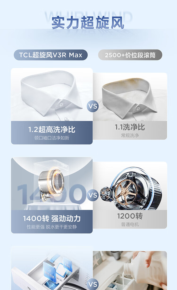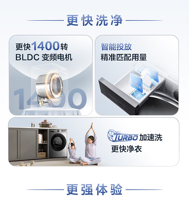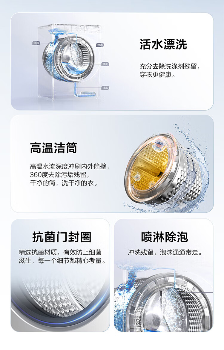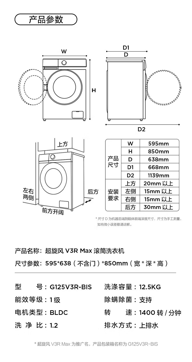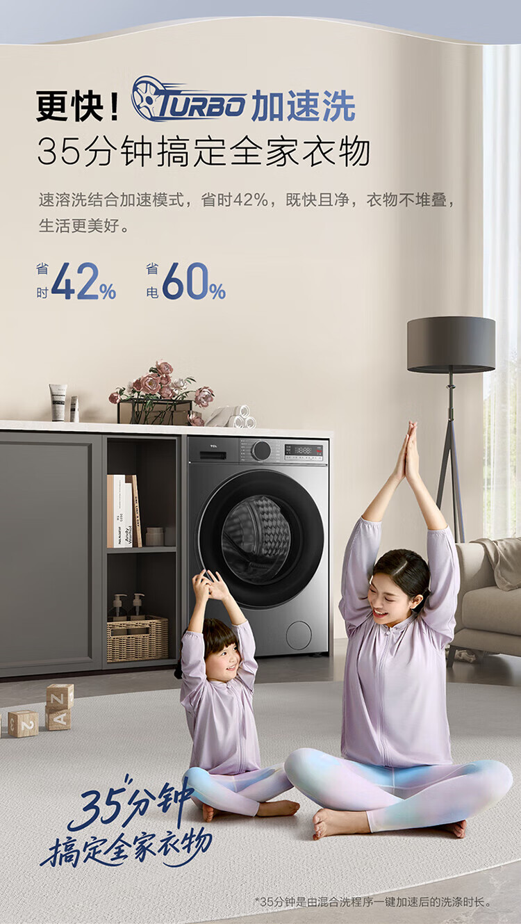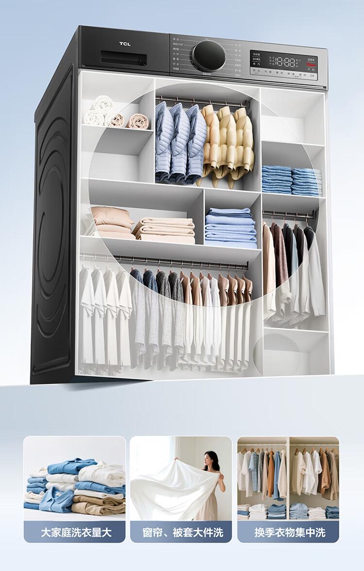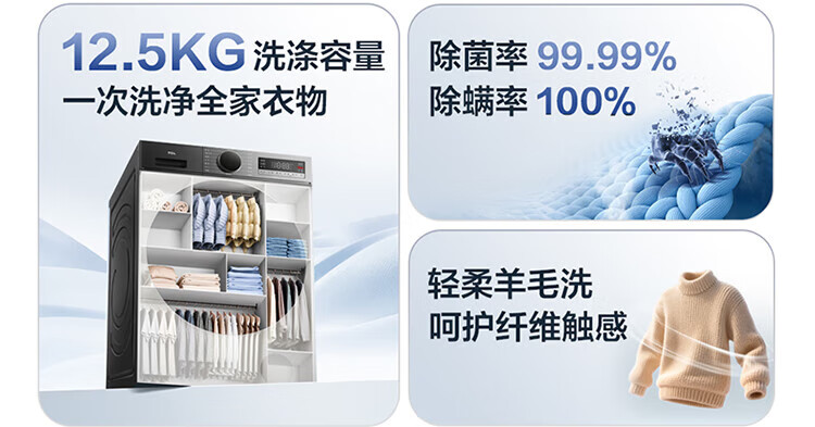 TCL洗衣机滚筒全自动12.5公斤1400转变频电机智能投放一级能效家用大容量超薄强力除菌杀螨1.2洗净比 12.5公斤灰色
