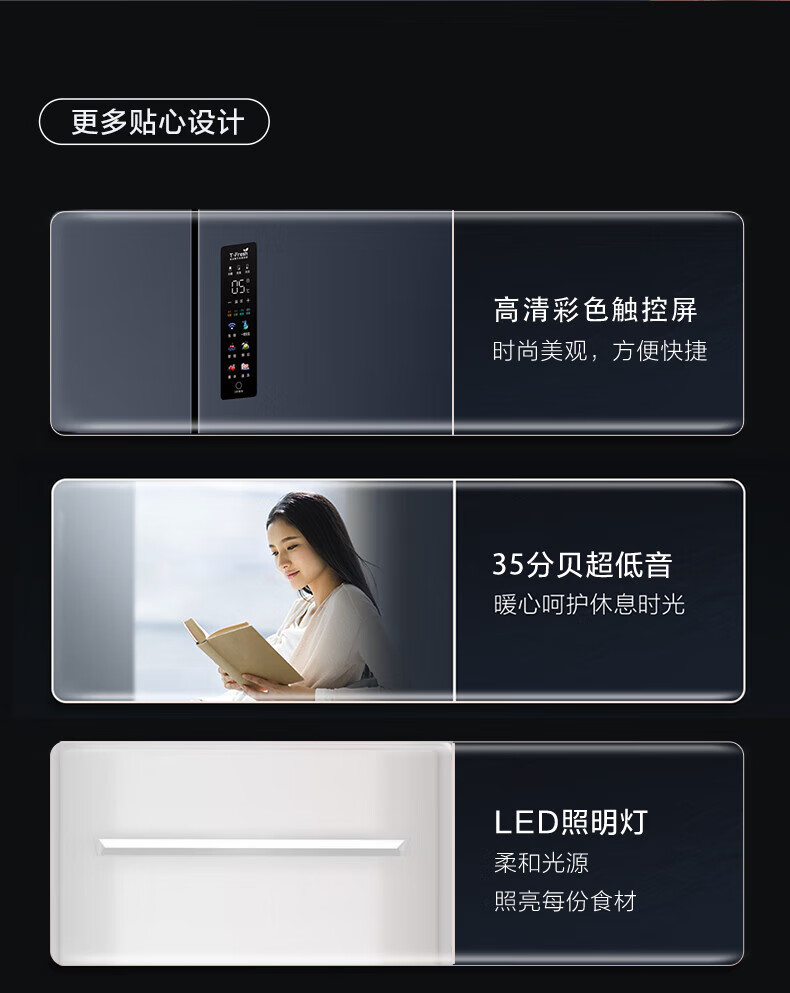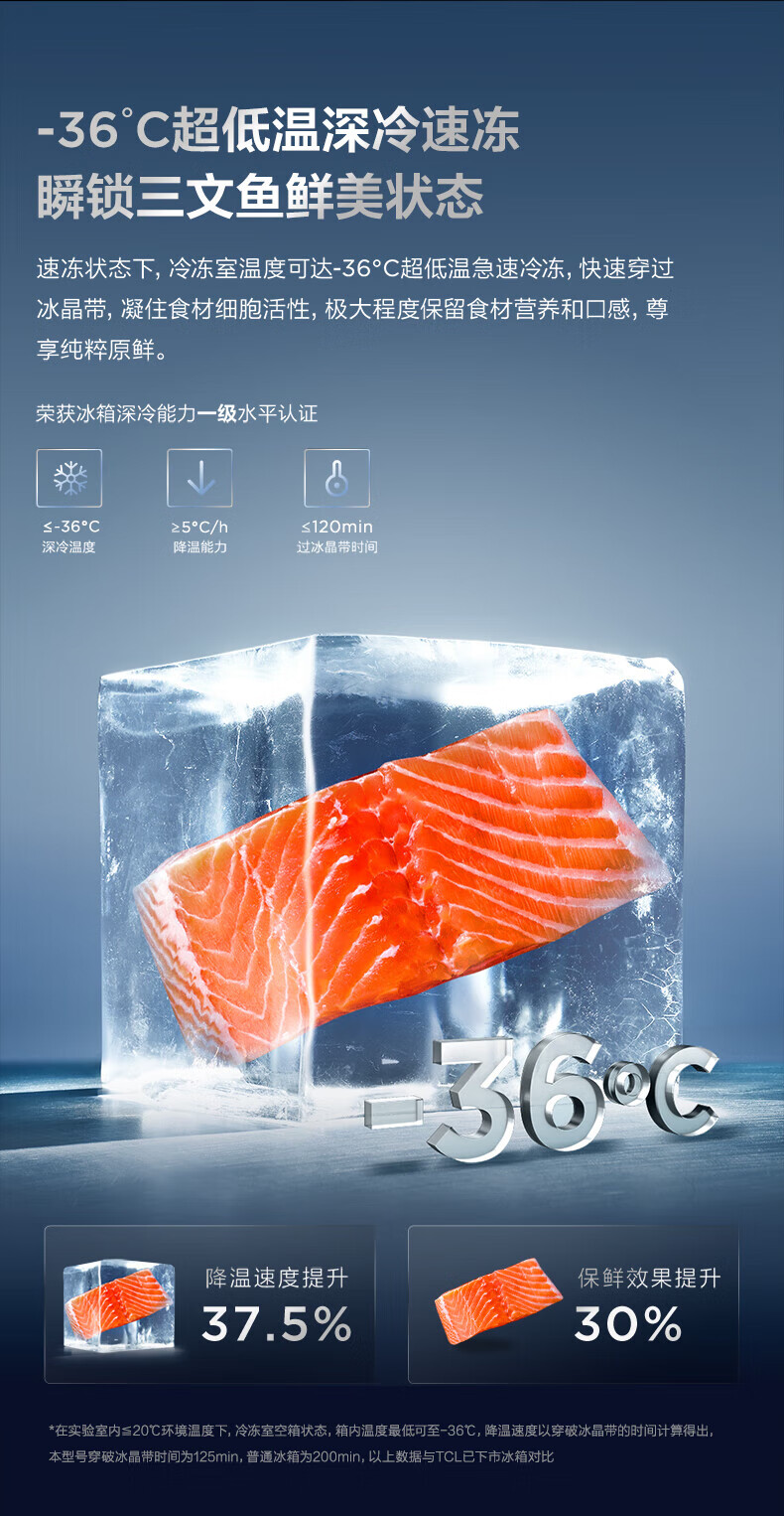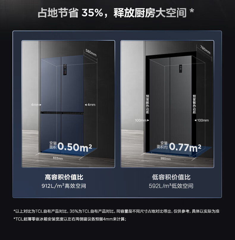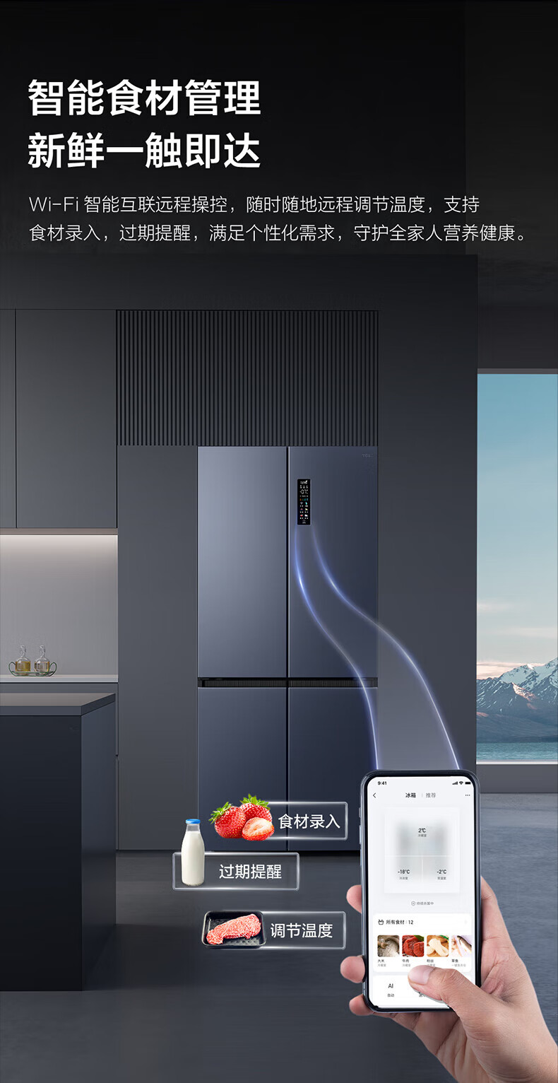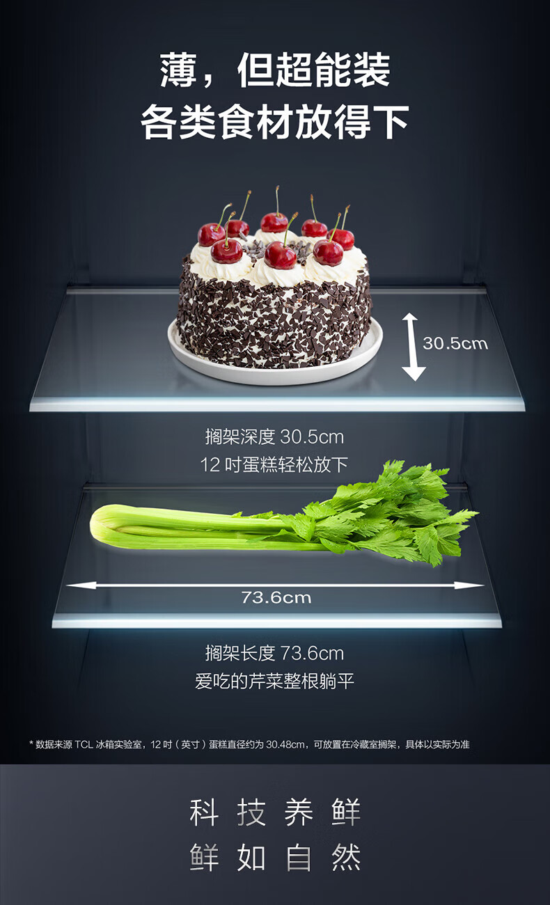 TCL对开门60/70/75/83厘米宽十字四门412升58cm深一级风冷零嵌入冰箱 405升 灰1.76米高70宽 一级风冷 两侧散热