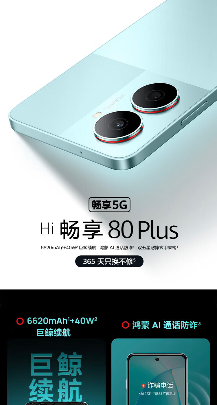 华为智选 畅享80Plus 5G手机【玄甲架构超级抗摔】 6620mAh巨鲸电池【24期免息】40W快充 红外遥控 补贴 12GB+512GB 幻夜黑 标配【赠延保+碎屏保】
