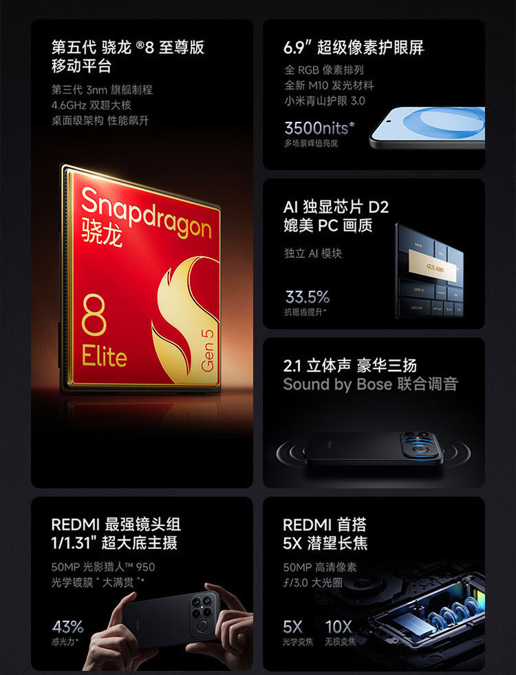 小米REDMI K90 Pro Max 冠军版 第五代骁龙8至尊版 青山护眼 白色 16GB+1TB 红米5G手机国家补贴