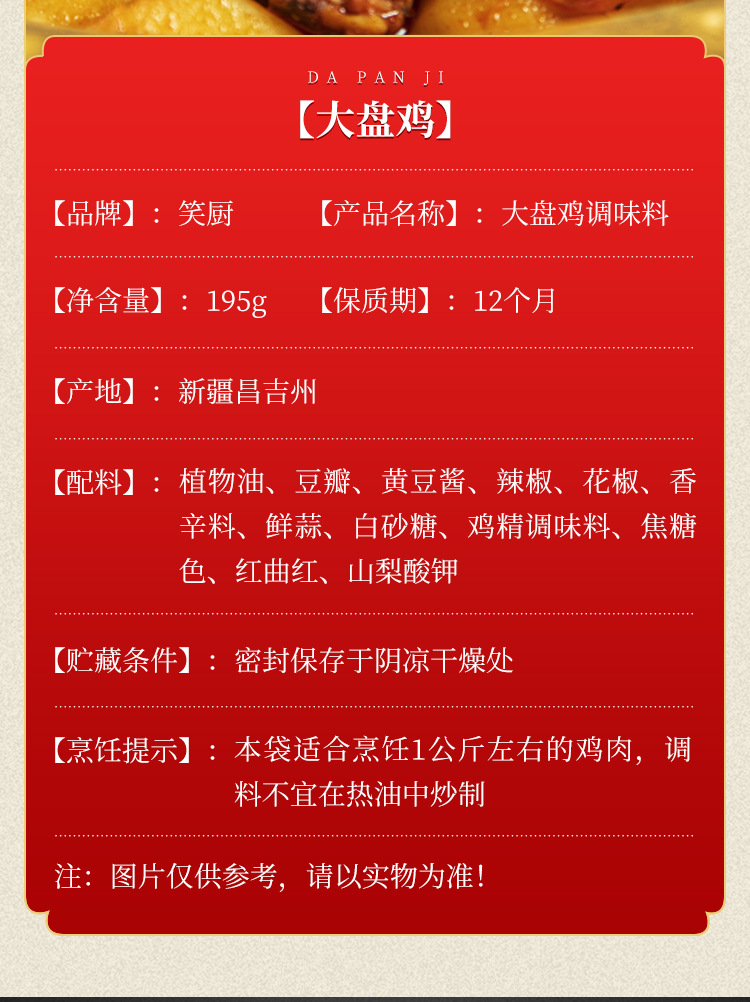 新疆产笑厨大盘鸡调料料炒鸡酱料包商用预制菜拌面焖料